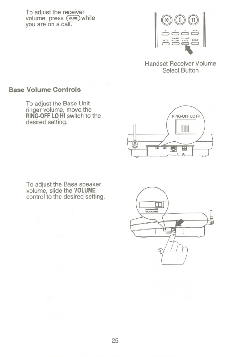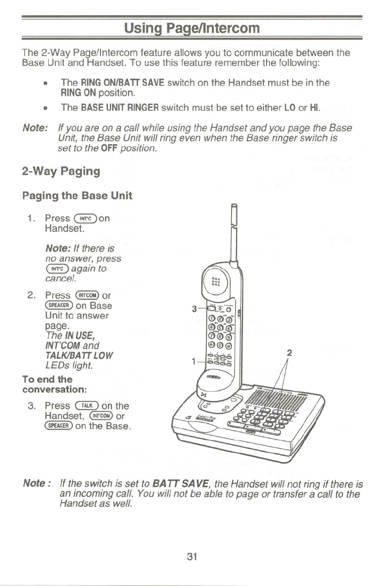 Base Unit doesn't ring or receive a page. .Set the Base Unit Ringer switch to LO or