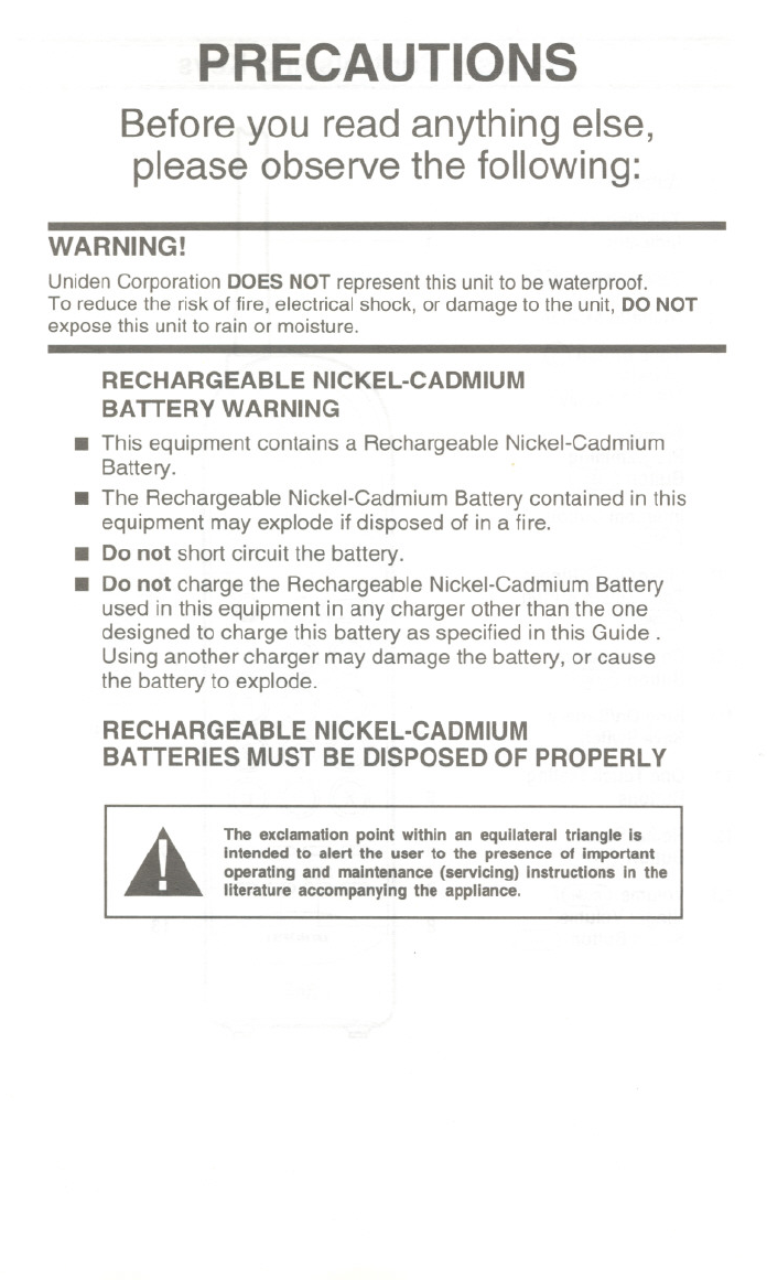 .Do not charge the Rechargeable Nickel-Cadmium Battery