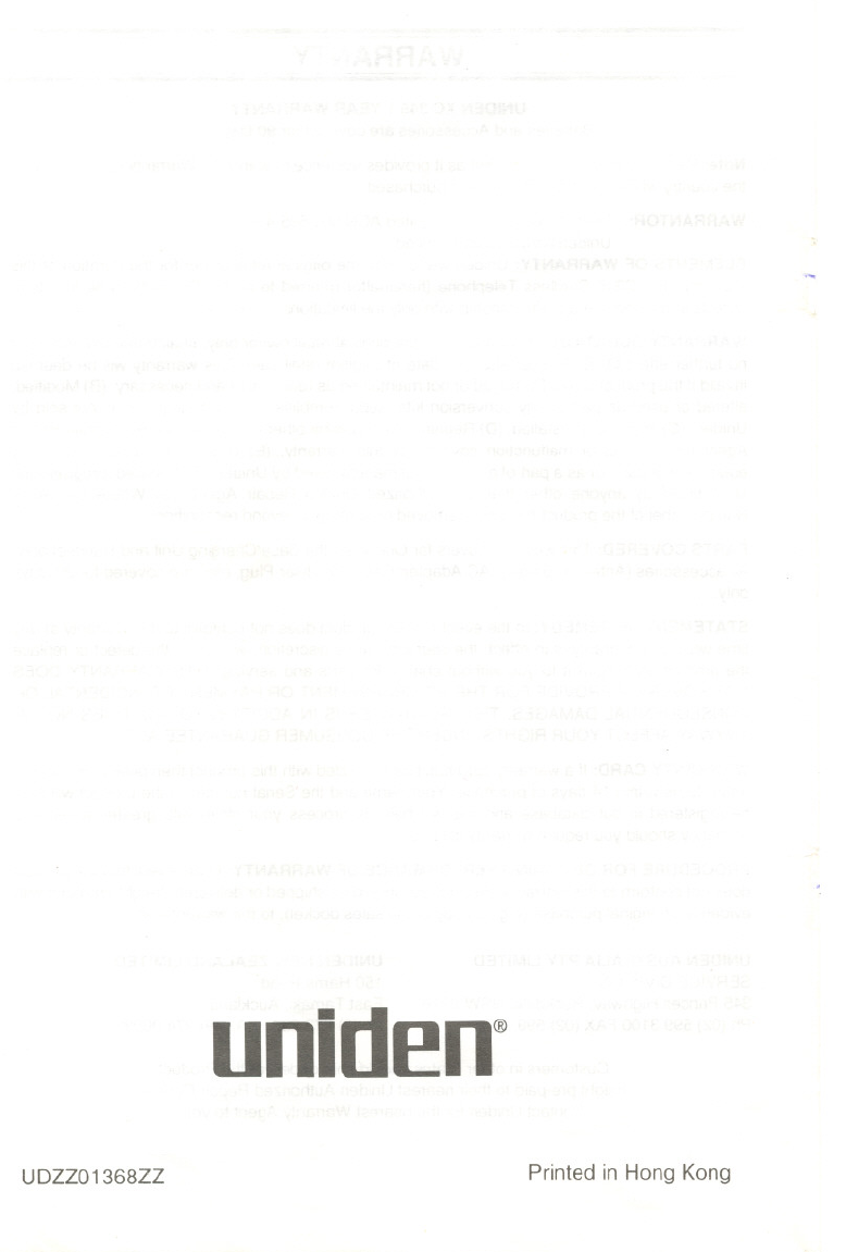 WARRANTOR: Uniden Australian Pty. Limited ACN 001 865498