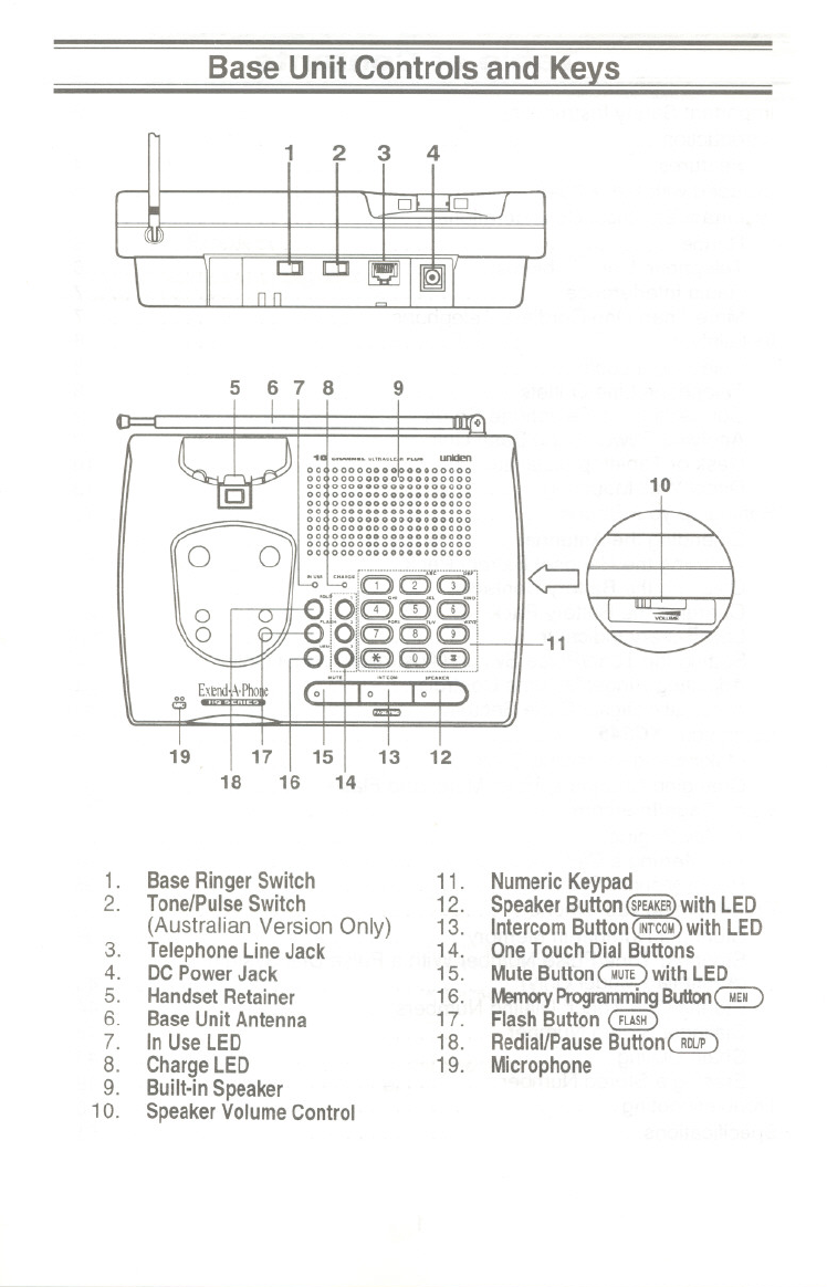 Base Unit Controls and Ke~s