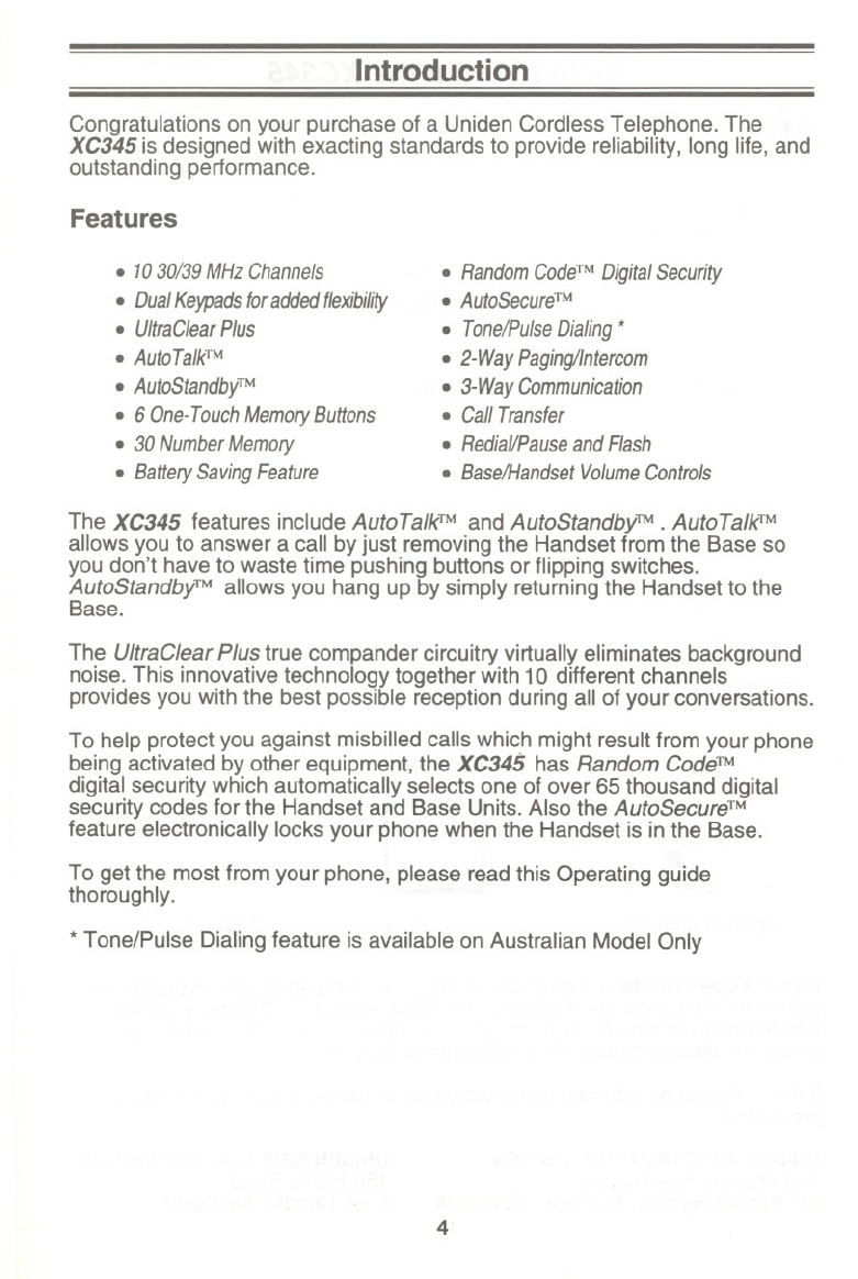 Uniden Xc345 Users Manual