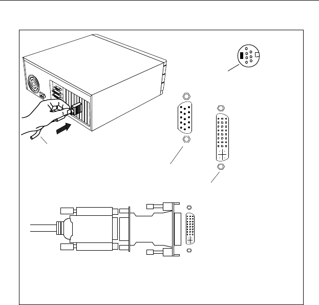 supplied DVI-I-to-VGA adapter into the DVI-I connector, then