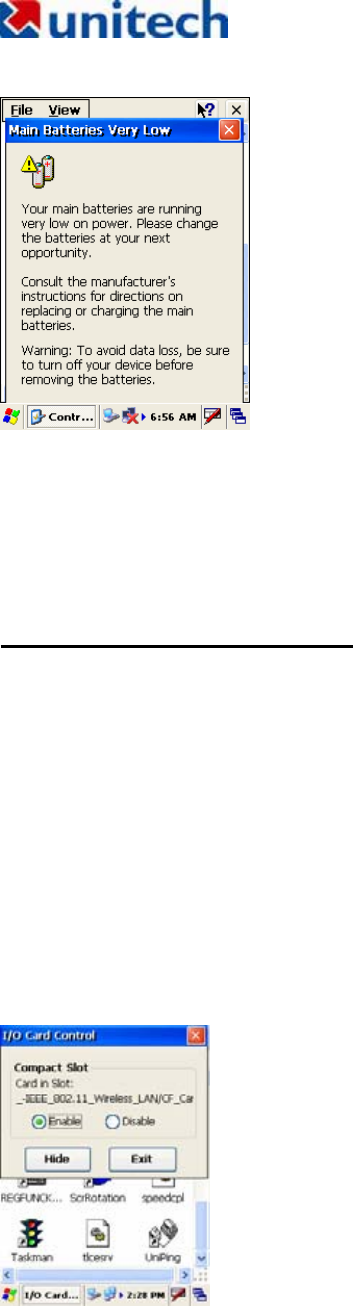 the Unitech HT660 may not power-on due to battery discharge as a result of