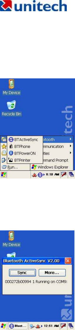 Select BTActiveSync from Communication on the Startup bar