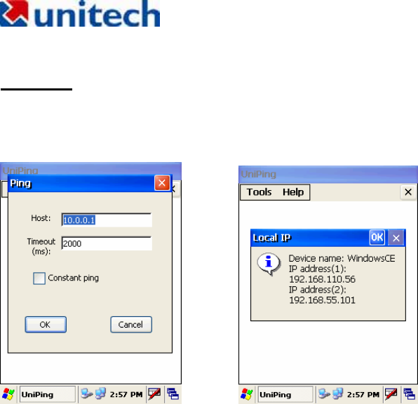 This Unitech program enables the user to ping their IP to determine the status of