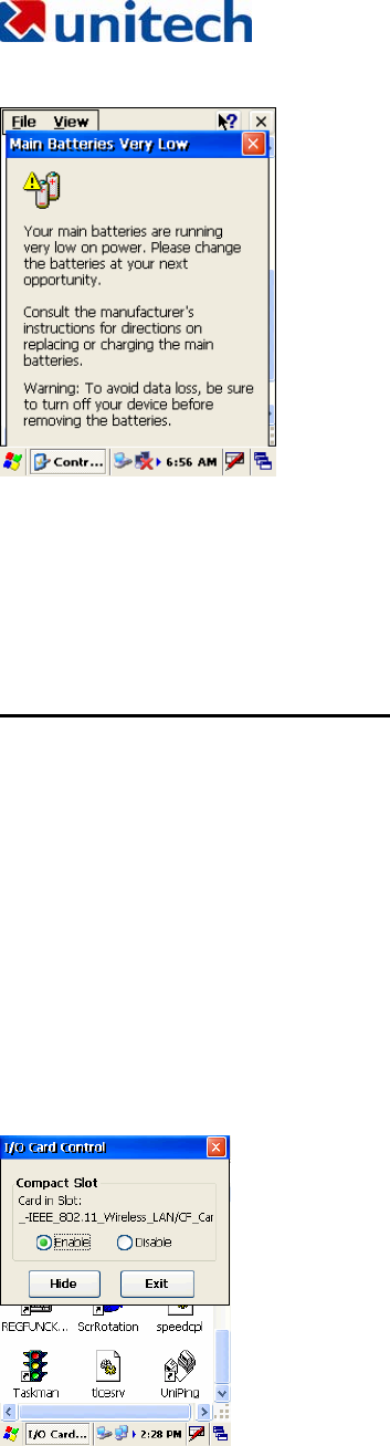 the Unitech HT660 may not power-on due to battery discharge as a result of