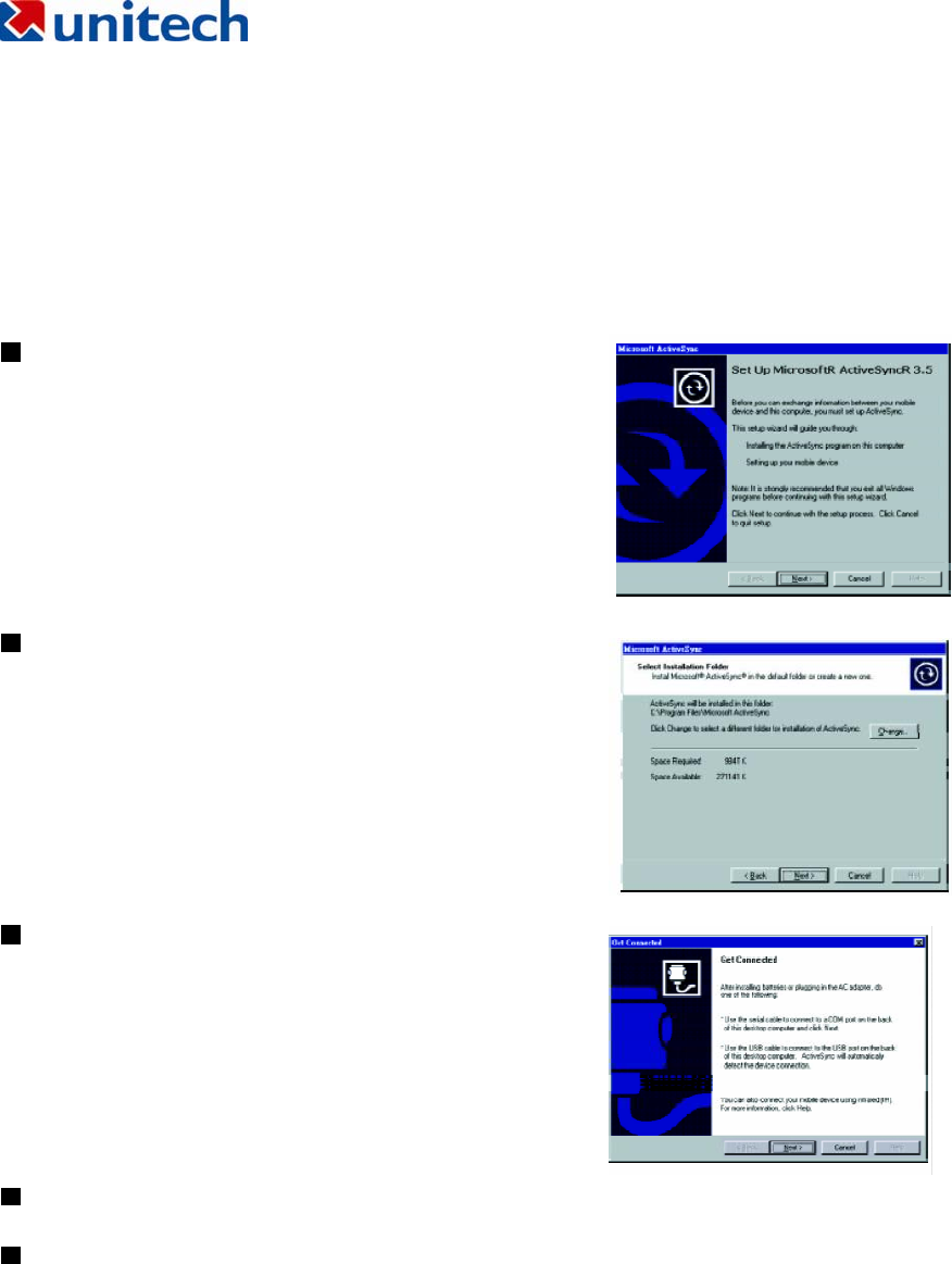 If Microsoft ActiveSync fails to detect the HT660 during installation, set up