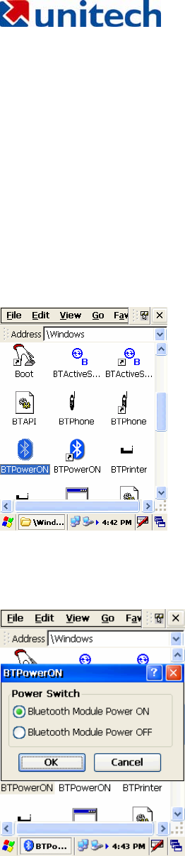 Select the BTPowerON program from Wireless Connection on your
