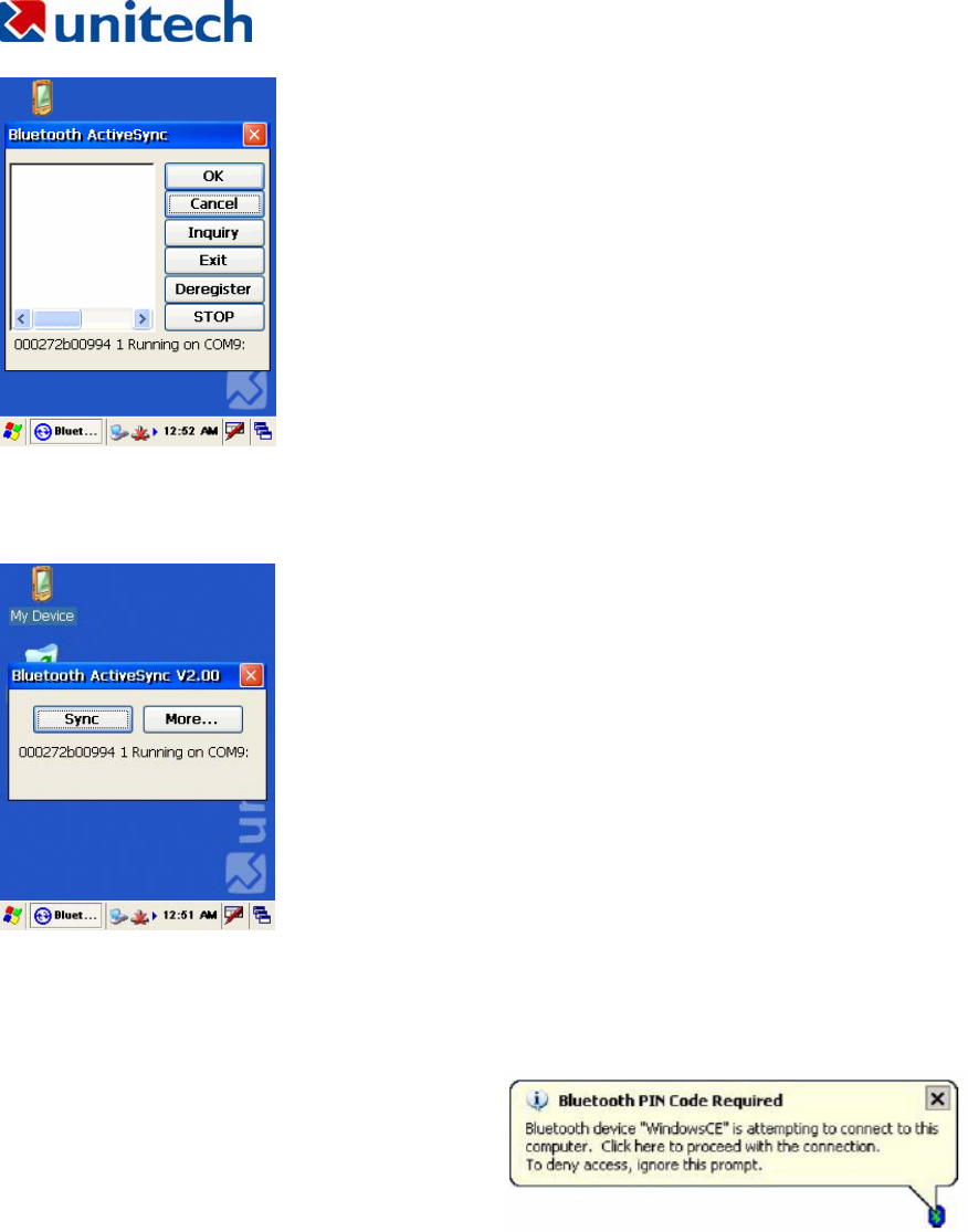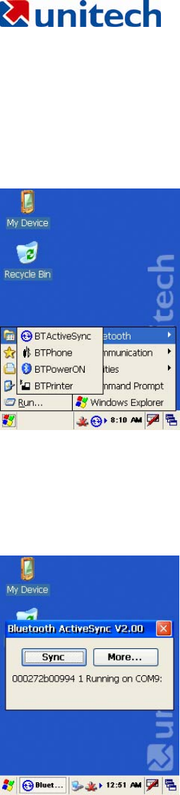 Select BTActiveSync from Communication on the Startup bar
