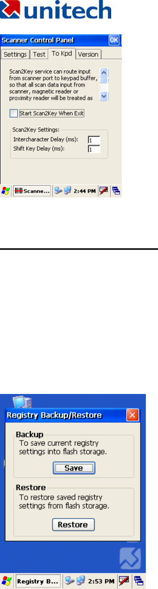 The Registry Backup program stores the HT660's registry settings for the user to
