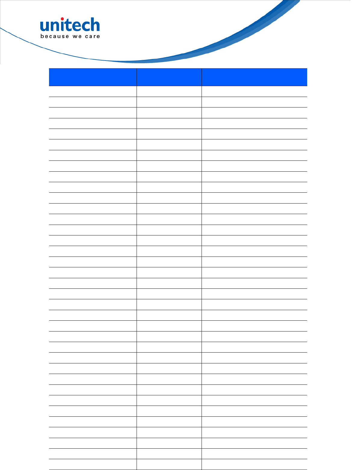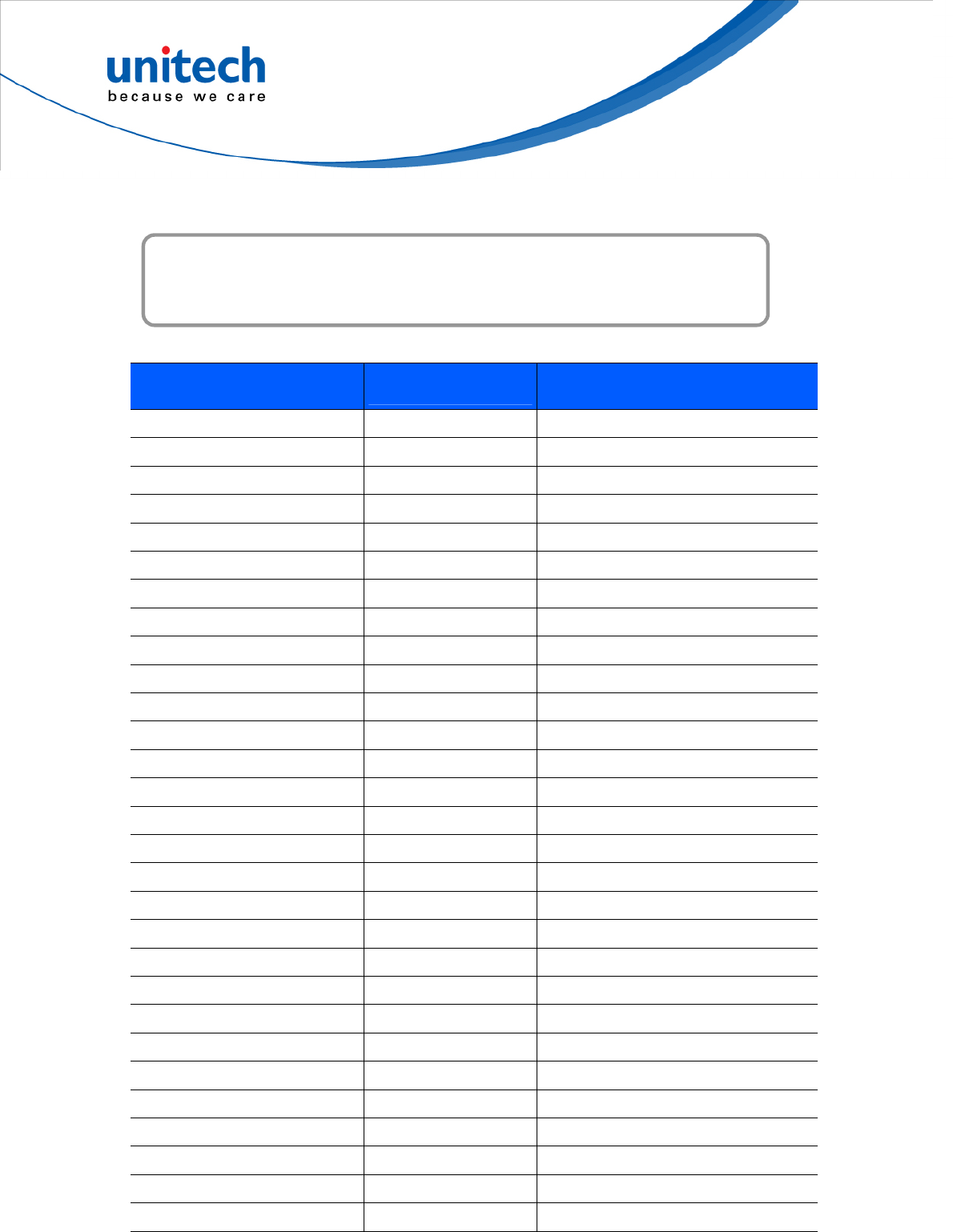 Unitech regional service representative. For complete contact information please visit the Web