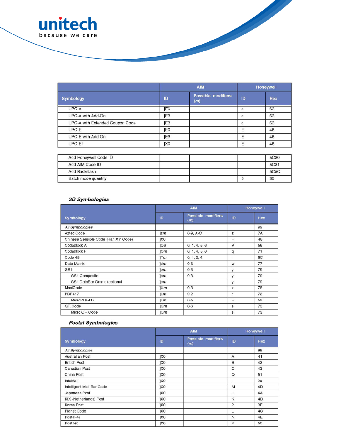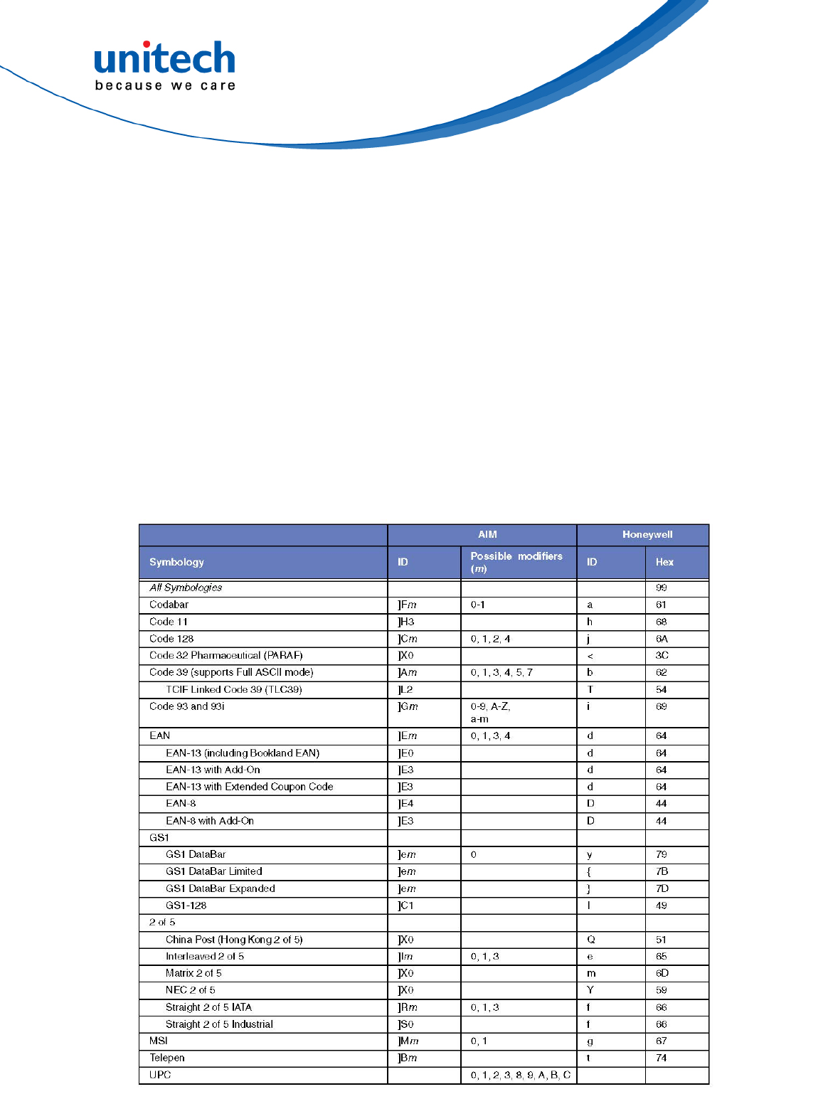 Specification, Symbology Identifiers, for AIM modifier character details.