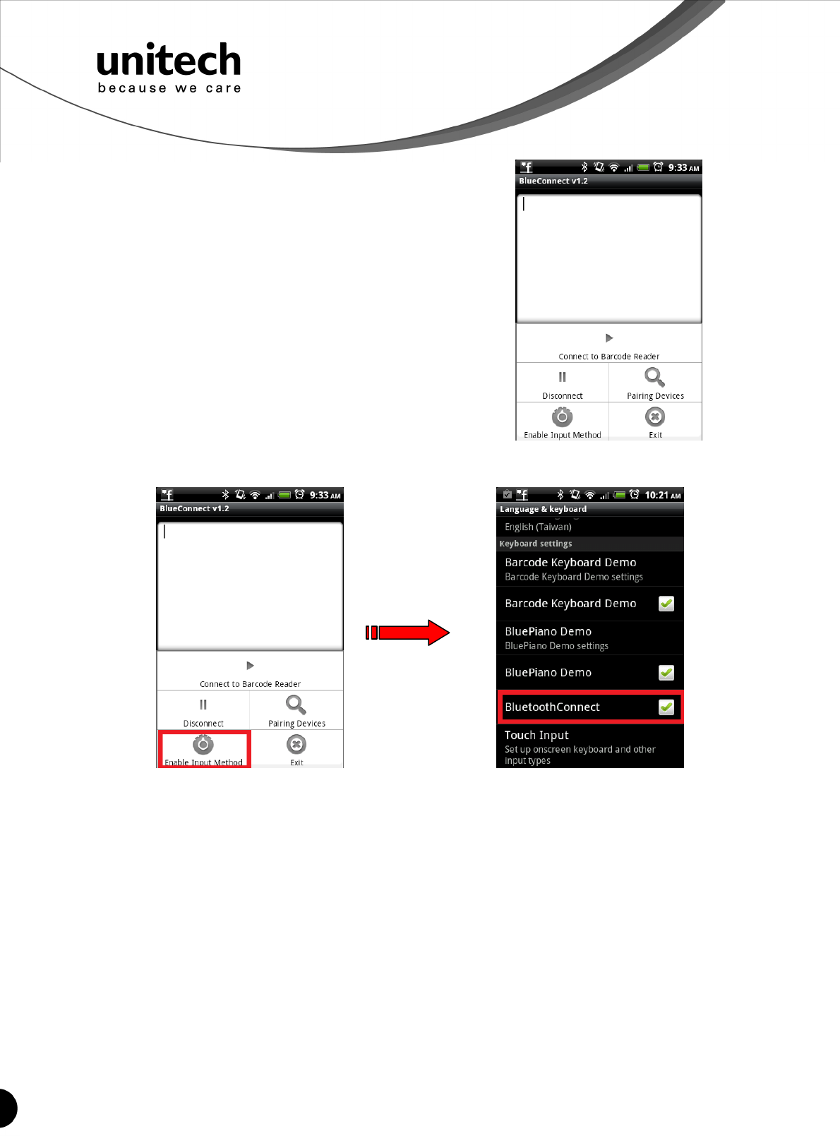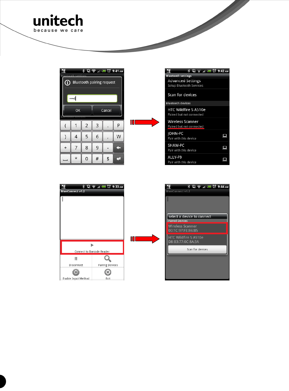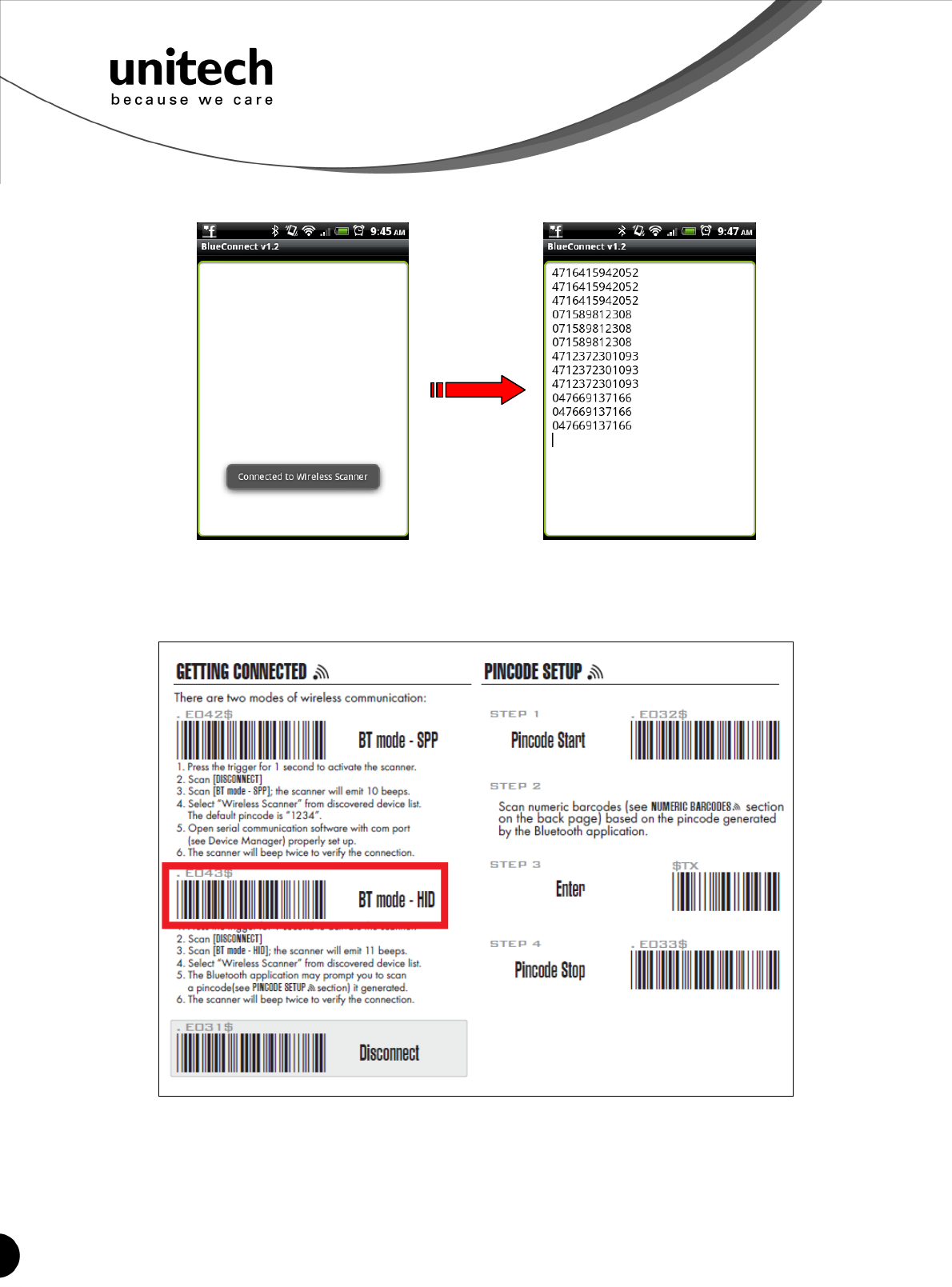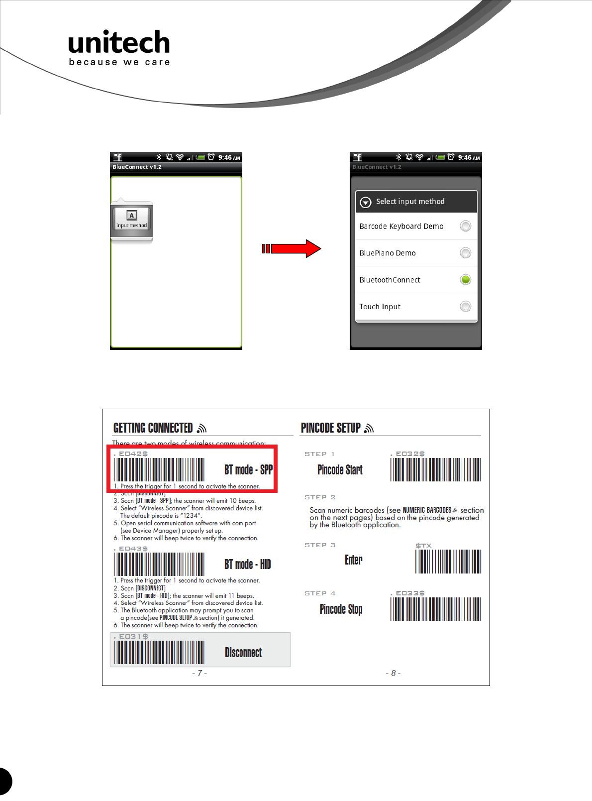 Note: Android 2.x devices can work with MS912 in the SPP mode ONLY. The SPP mode