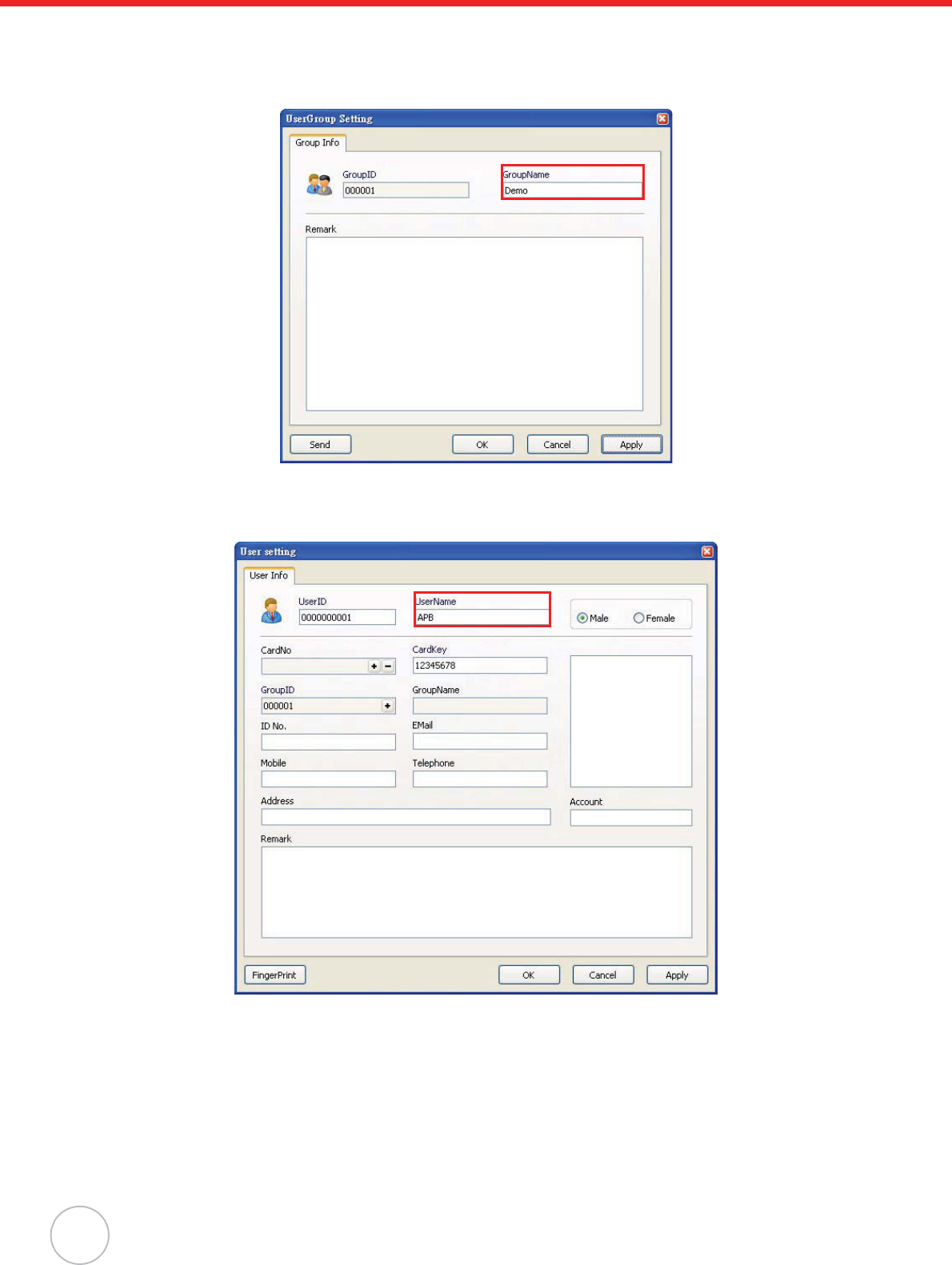 18. Input the card number in the Card No. field. Click Apply oOK to return to the User setting