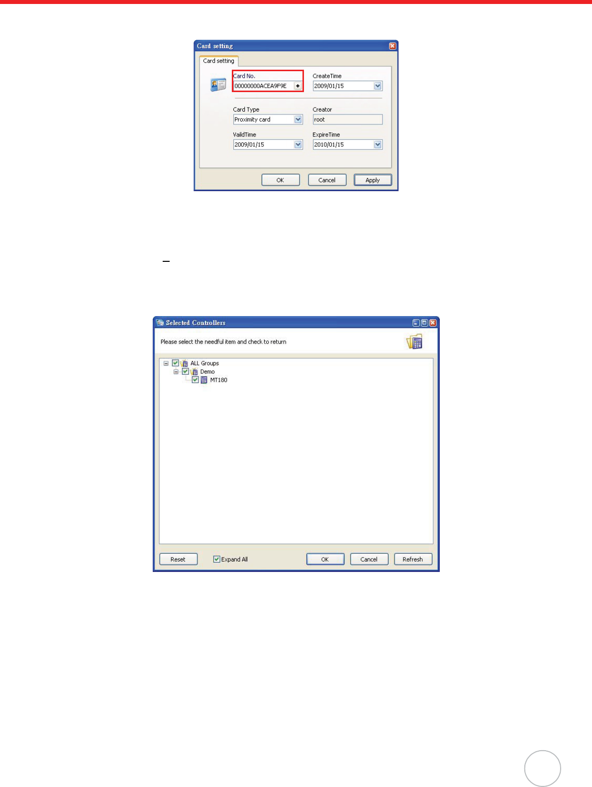 18. Input the card number in the Card No. field. Click Apply oOK to return to the User setting