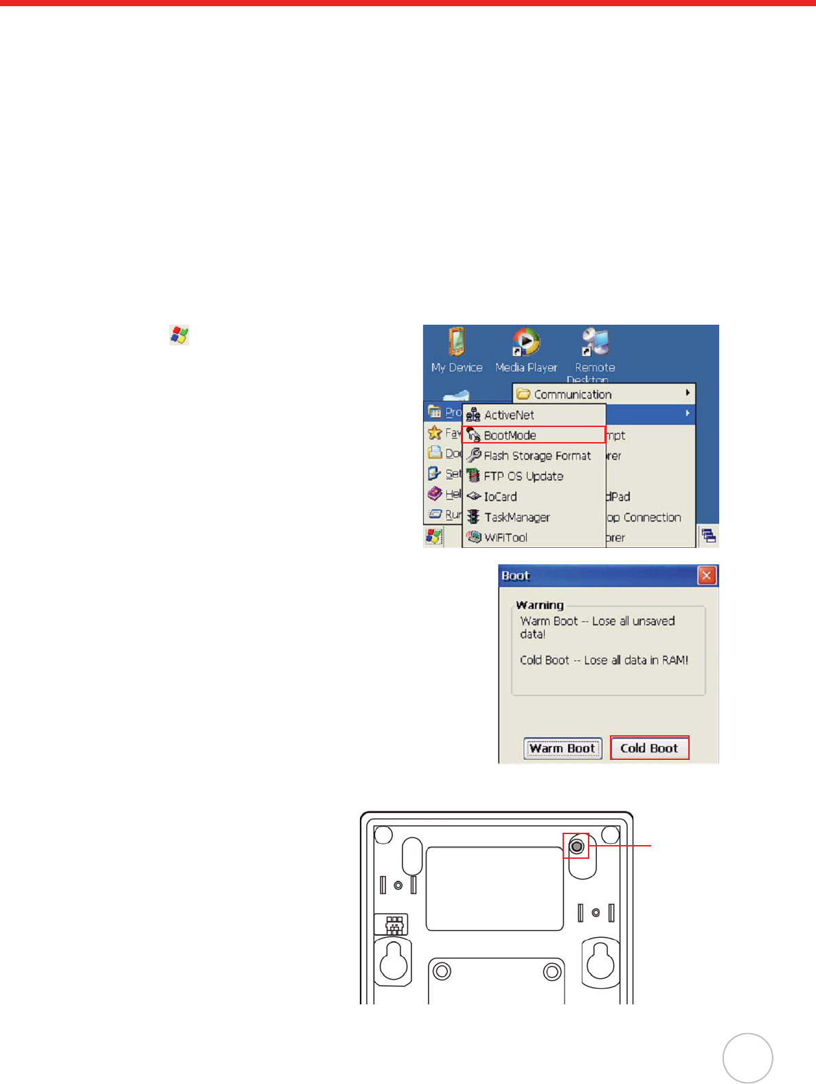 CAUTION! A cold start erases all data and installed applications in RAM memory.