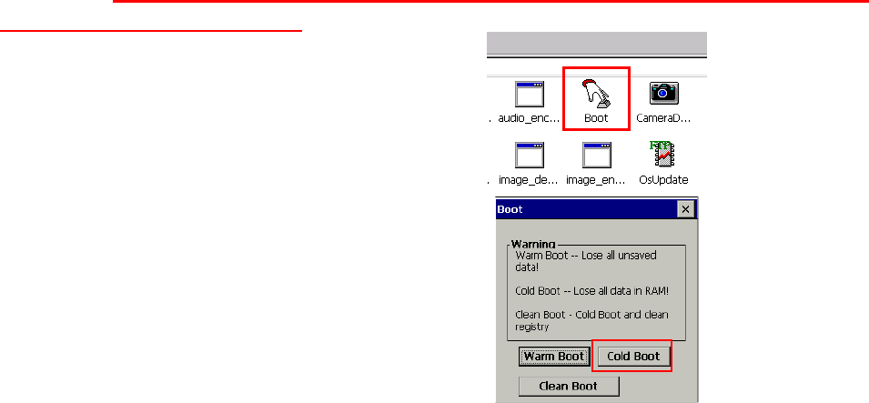 CAUTION! A cold boot will erase all data and installed applications in RAM memory.