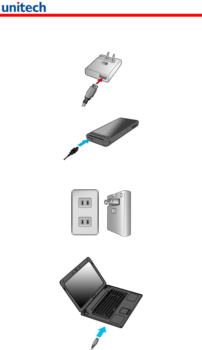 3. Plug the AC charger into a wall outlet. If needed, attach a plug converter