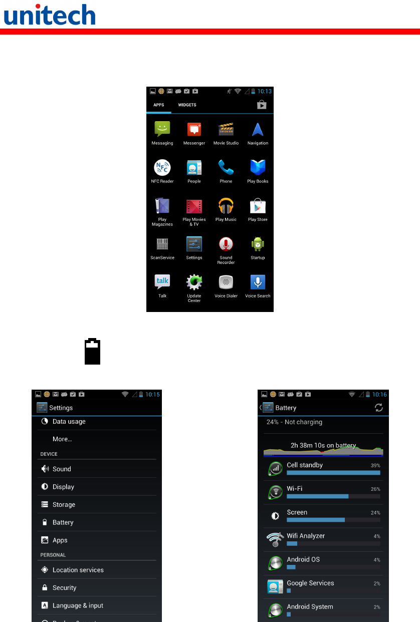 2.6 To check the battery level and to access the battery usage