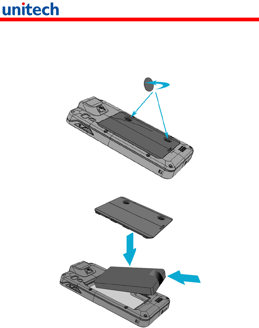1. Using a proper tool (ex. a coin) to loosen the two screws on the battery