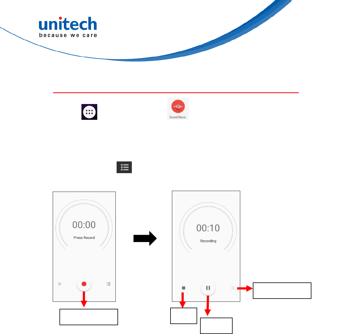 2.  Recording : Tap red dot to start the sound recording.