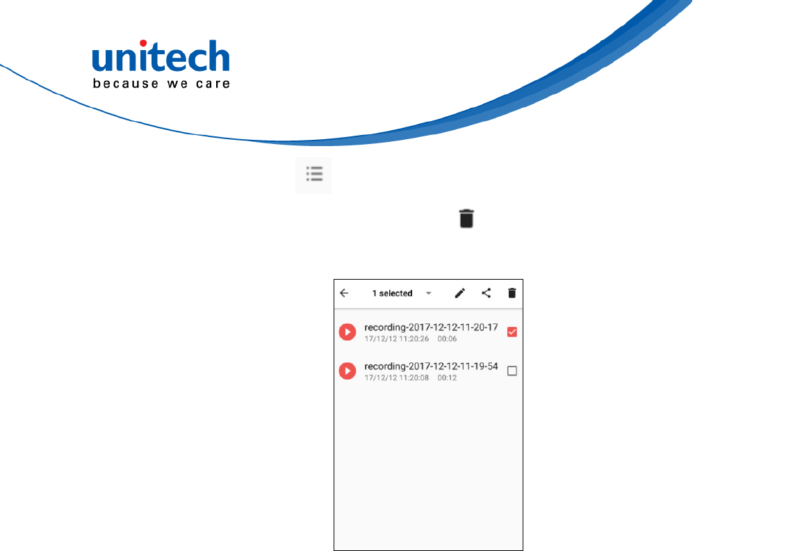 4.  Delete files : Tap   to the recording file list and long press the file you