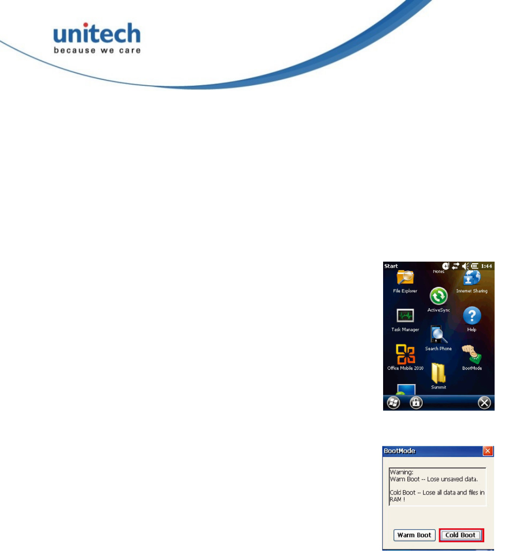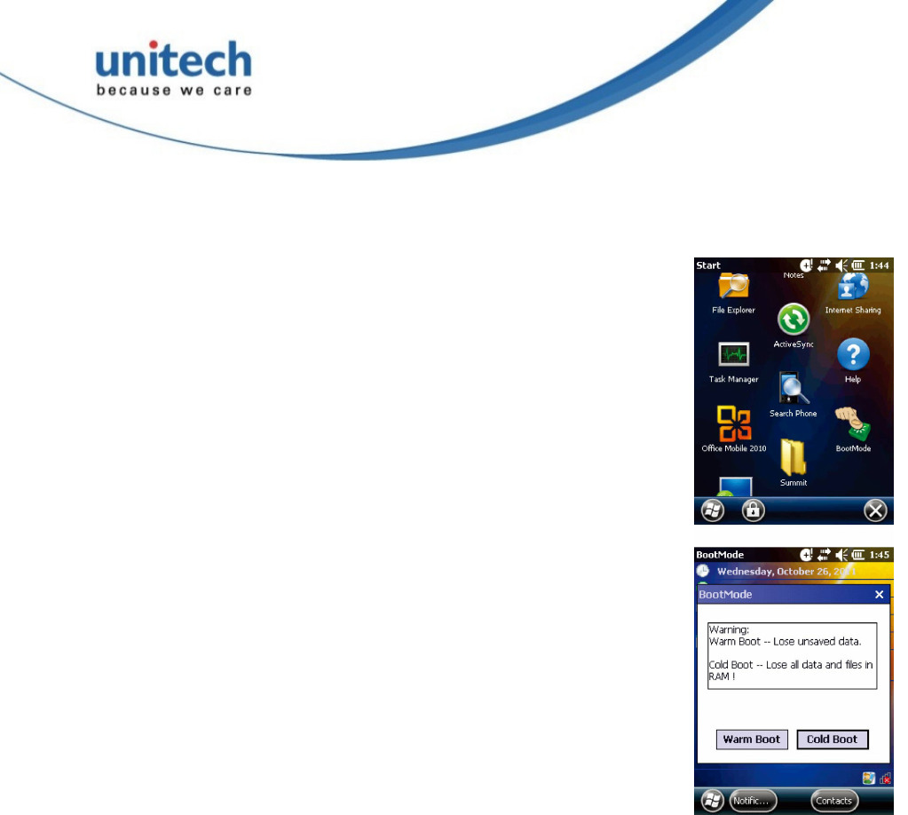 appears. Tap Reset and the terminal will perform warm boot. After the Startup
