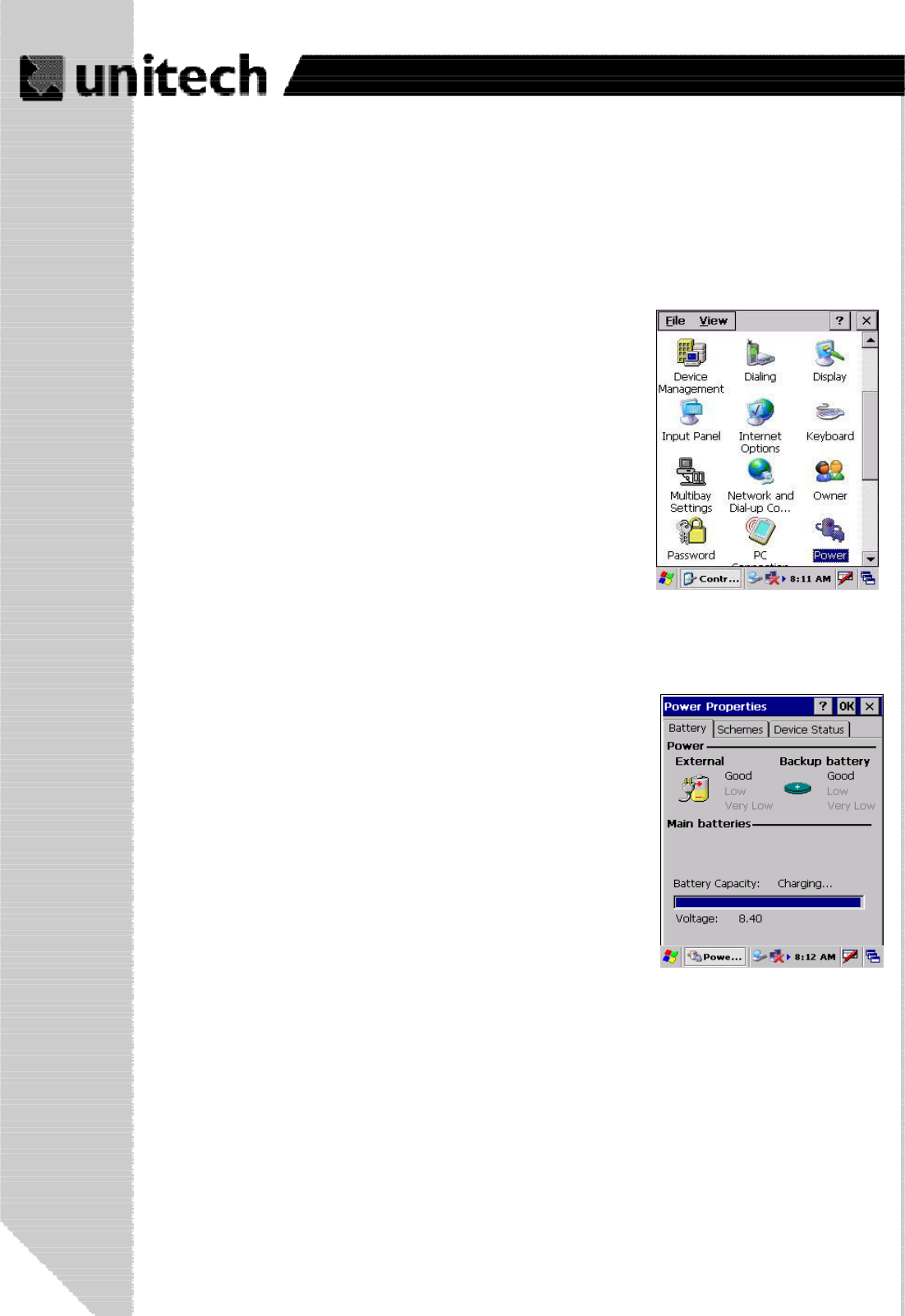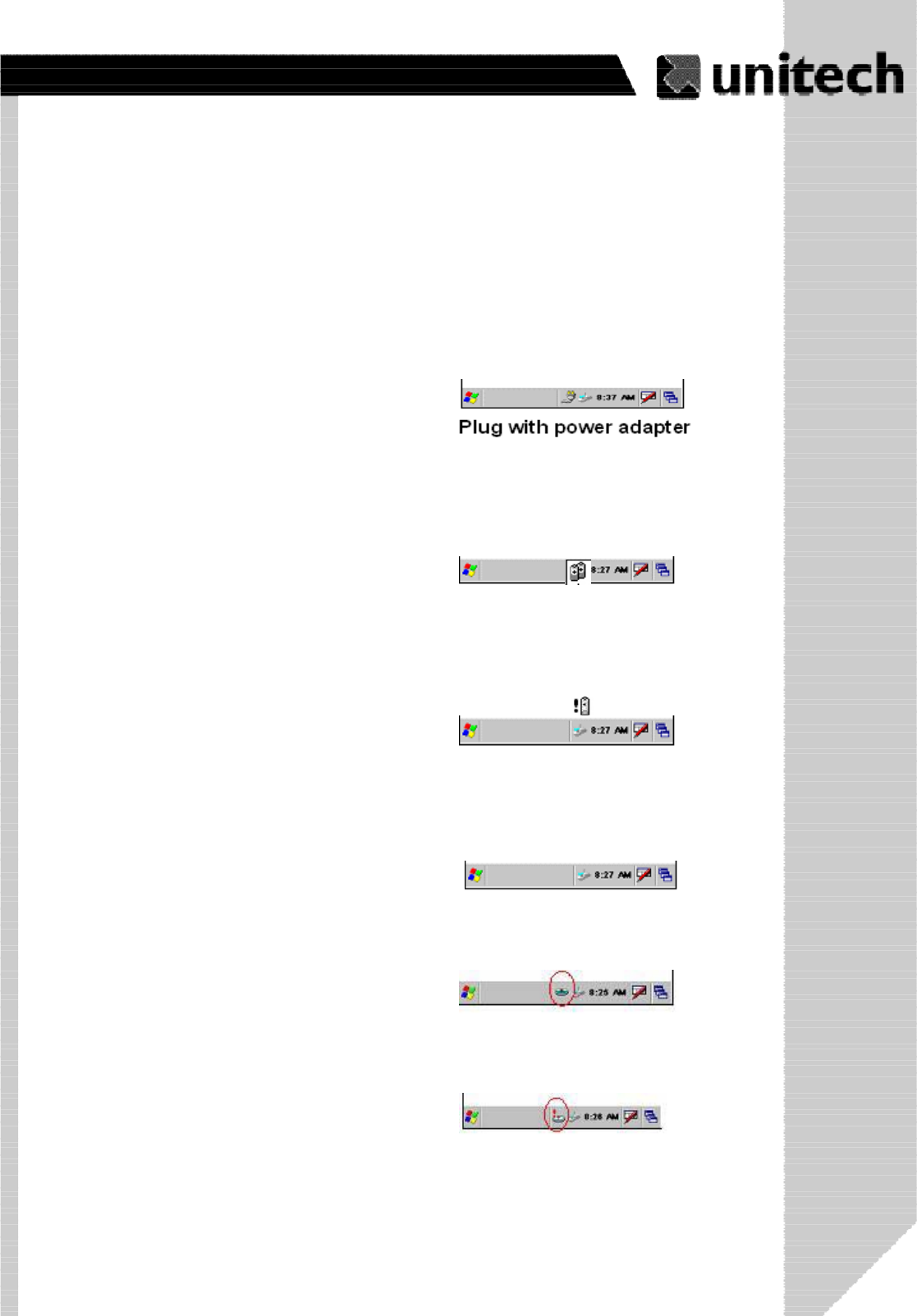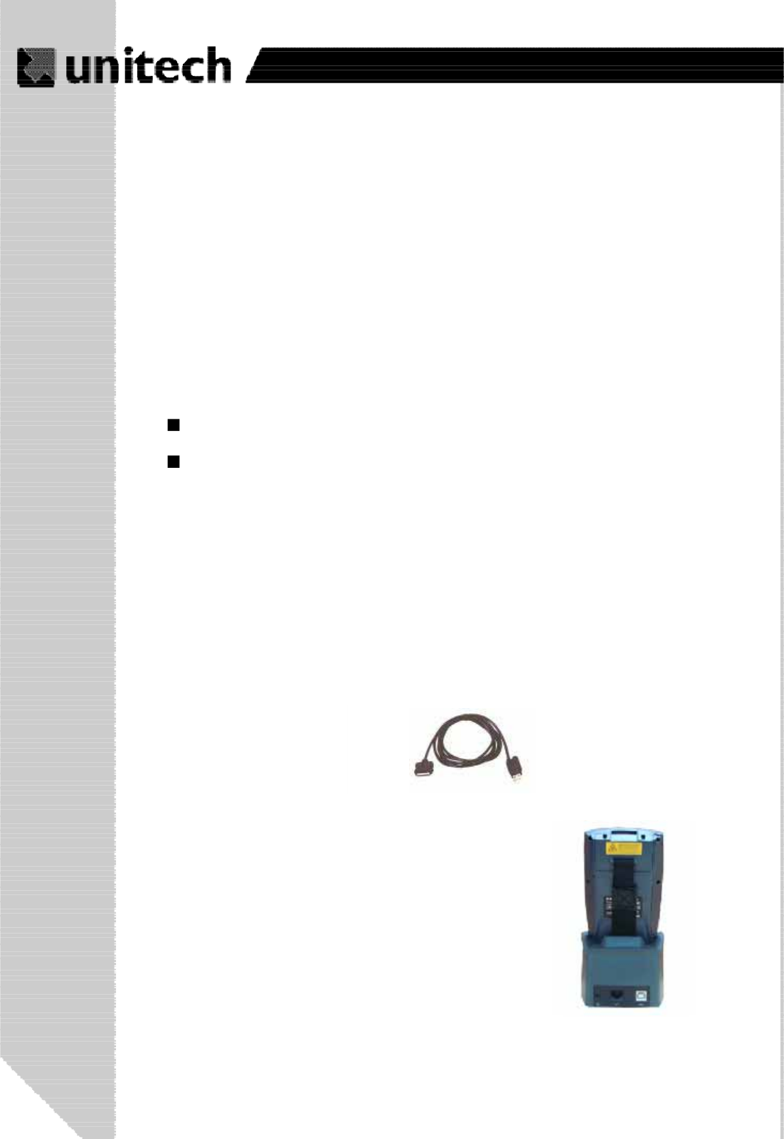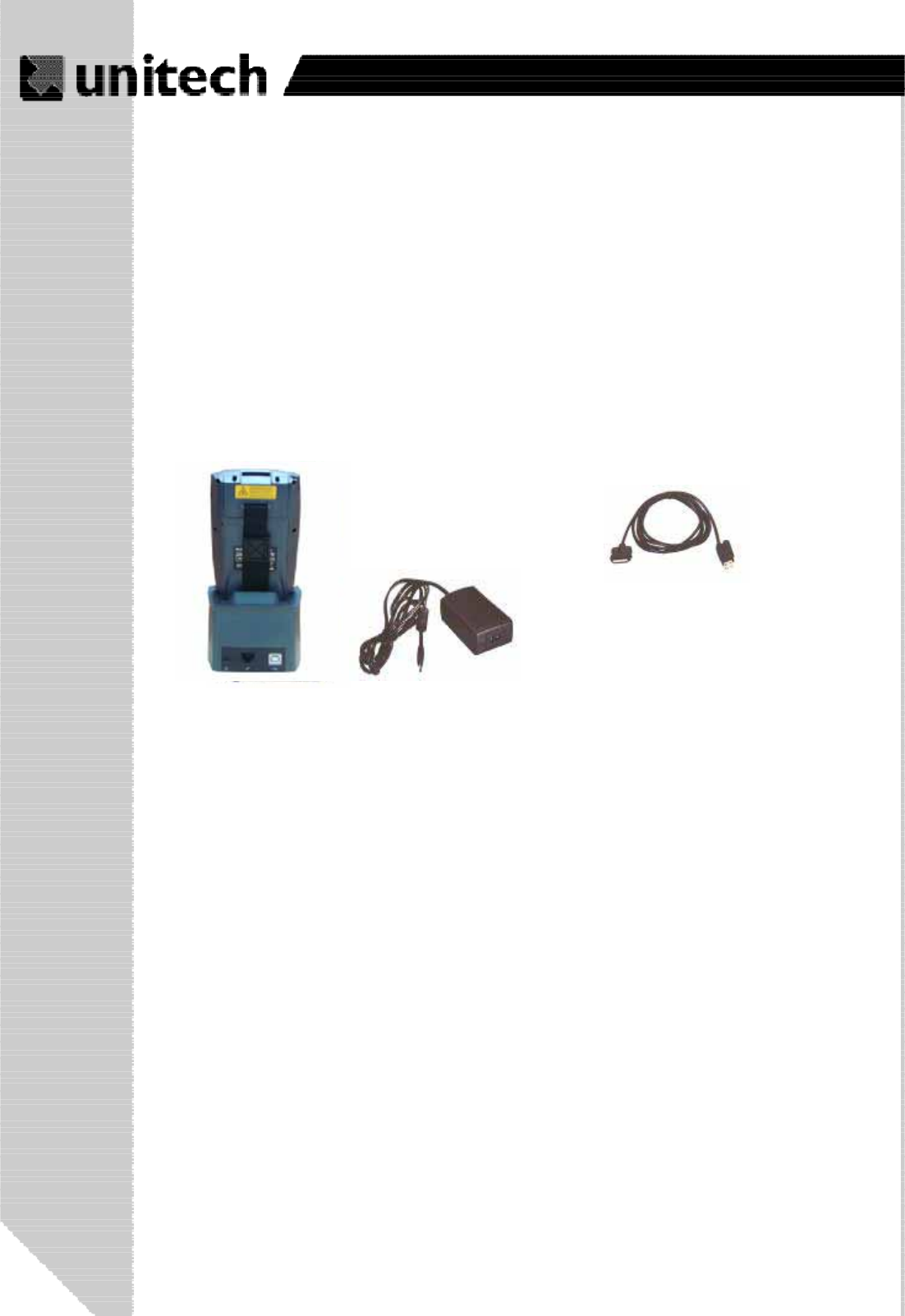 into the Unitech PA96x Cradle (with 12V/2A AC-DC adapter), and recharge the unit for 16 hours in order to