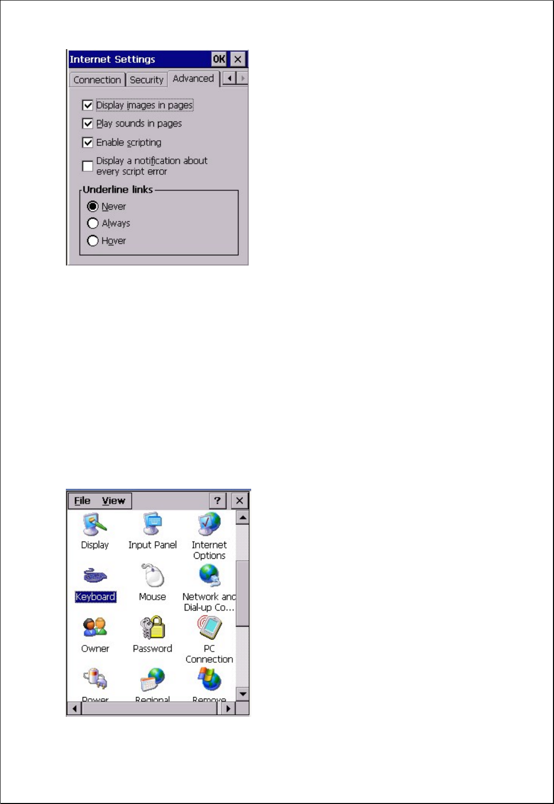 5. Under “Advanced” tab, click and select the options you want the browser to