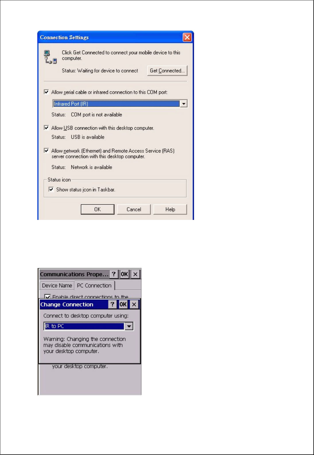 Settings”. Allow Serial cable or infrared connection to this com port, select