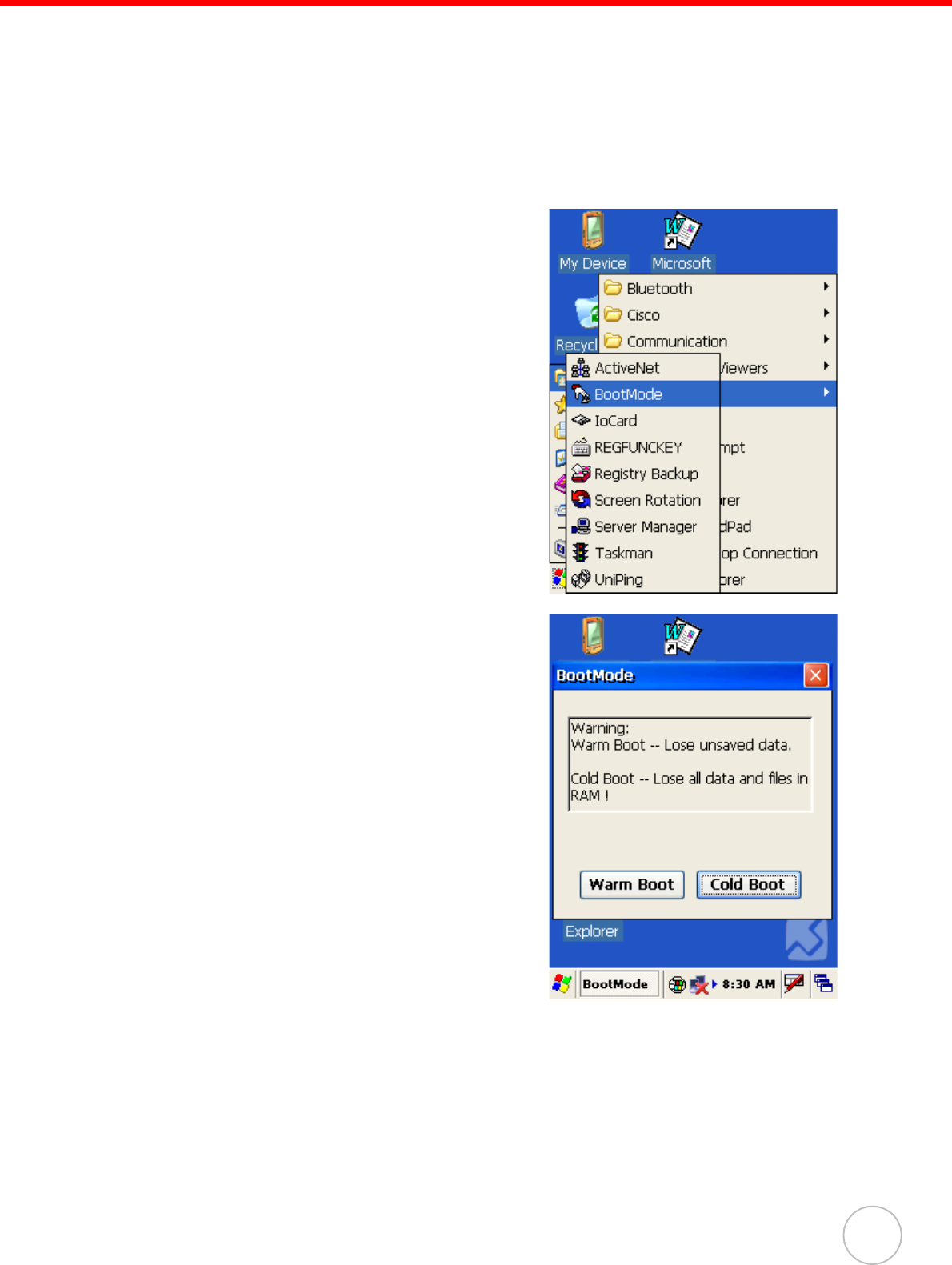 1. Tap Start → Programs → Utilities → Boot