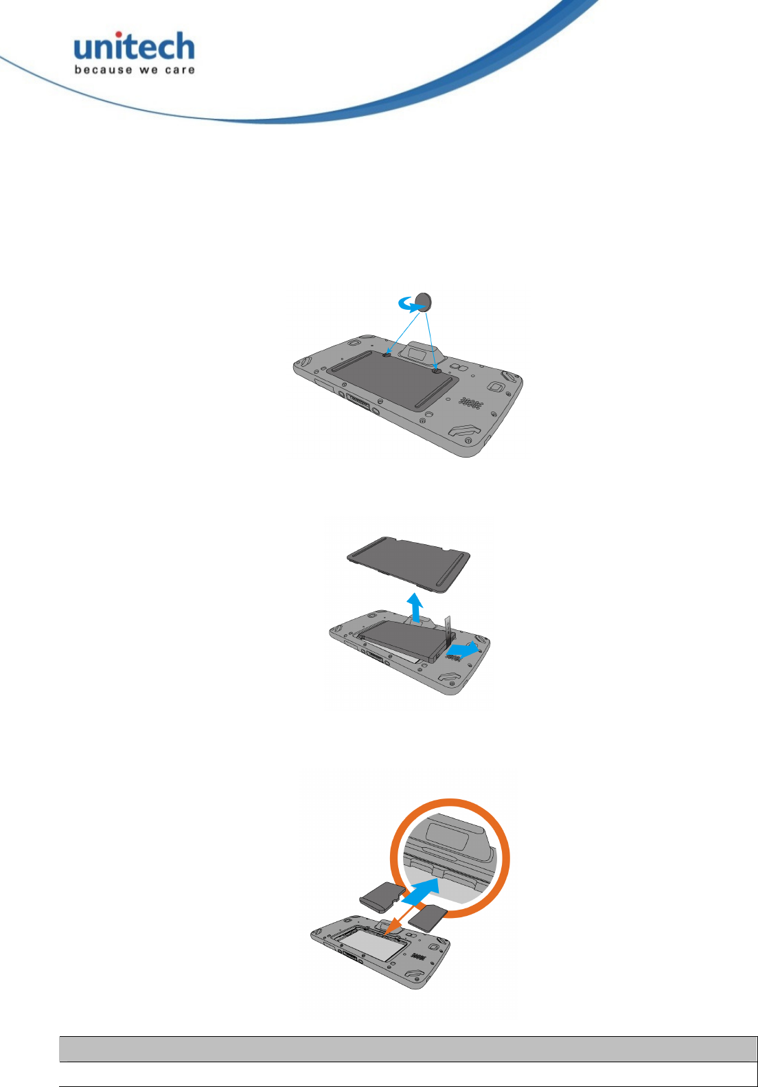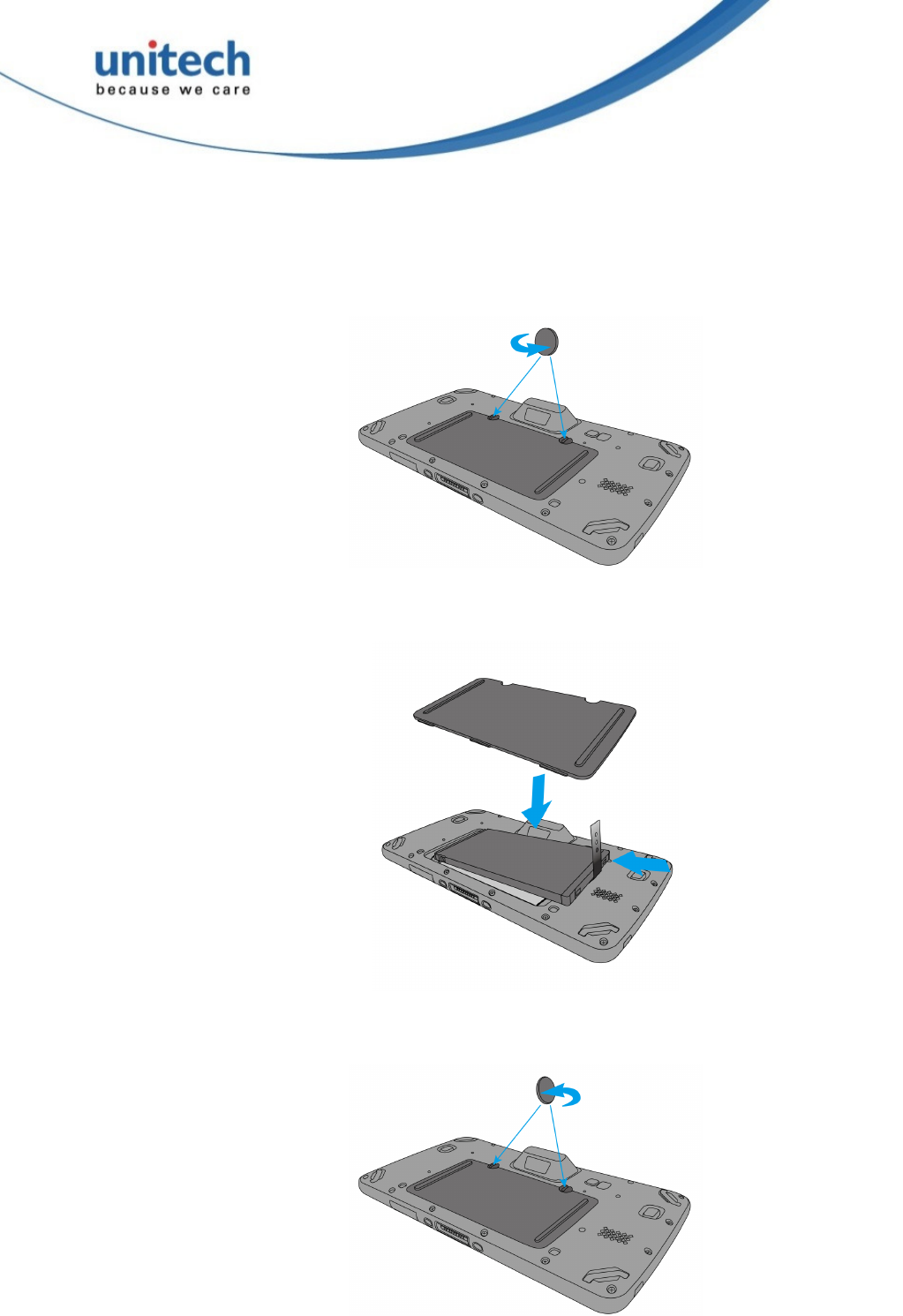 1. Using a proper tool (ex. a coin) to loosen the two screws on the battery cover by turning