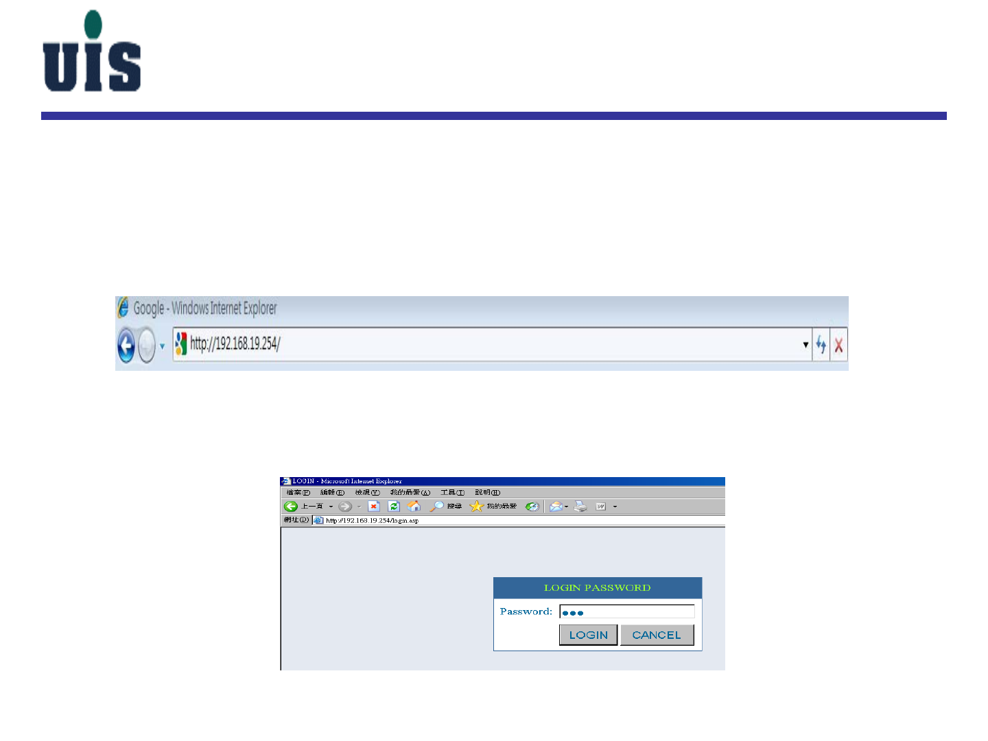 - Open the IE browser(6.0 or above) and enter the Gateway IP (you may see