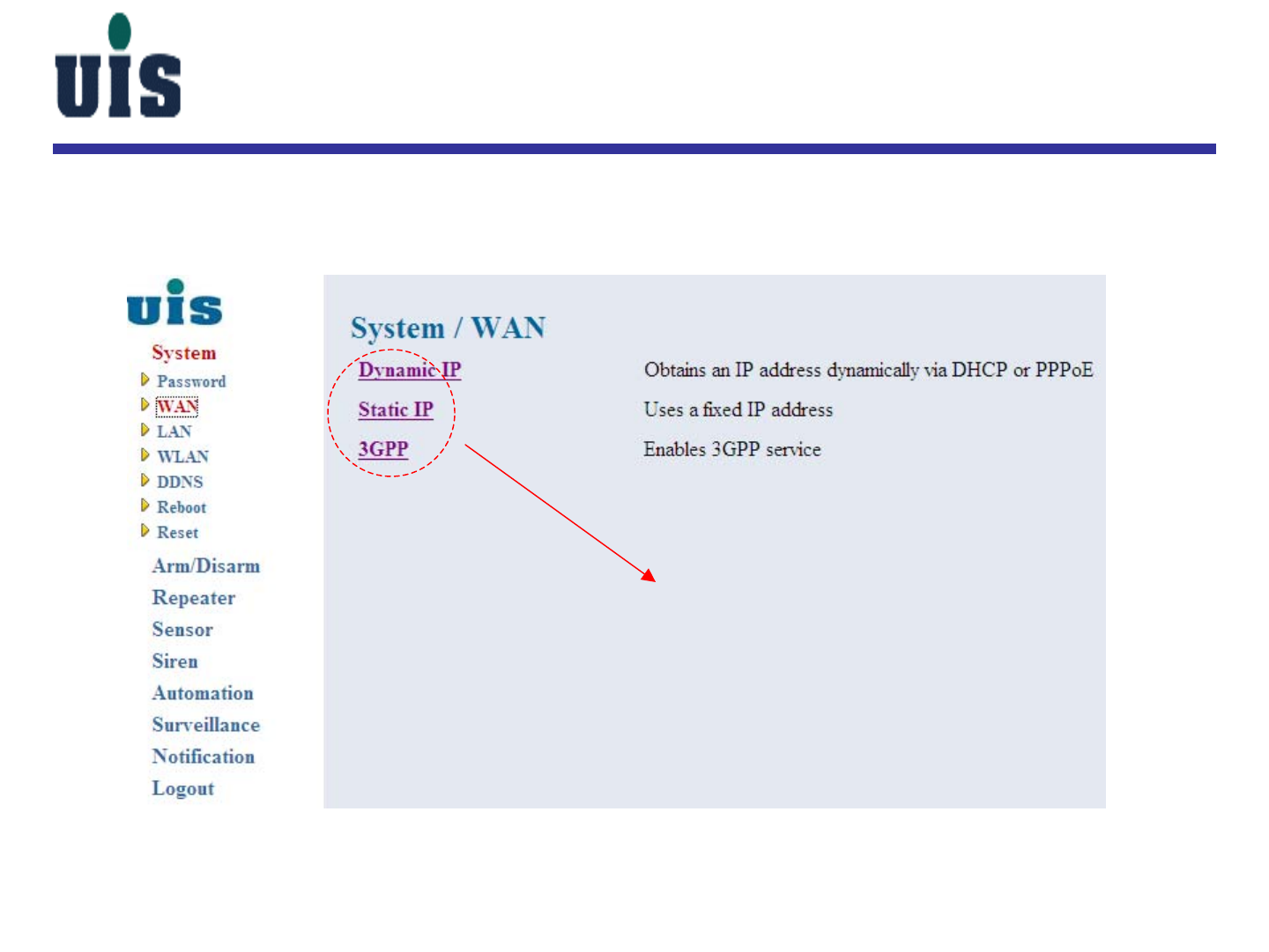 Step 9:Click “Static IP” to configure Gateway’s WAN interface