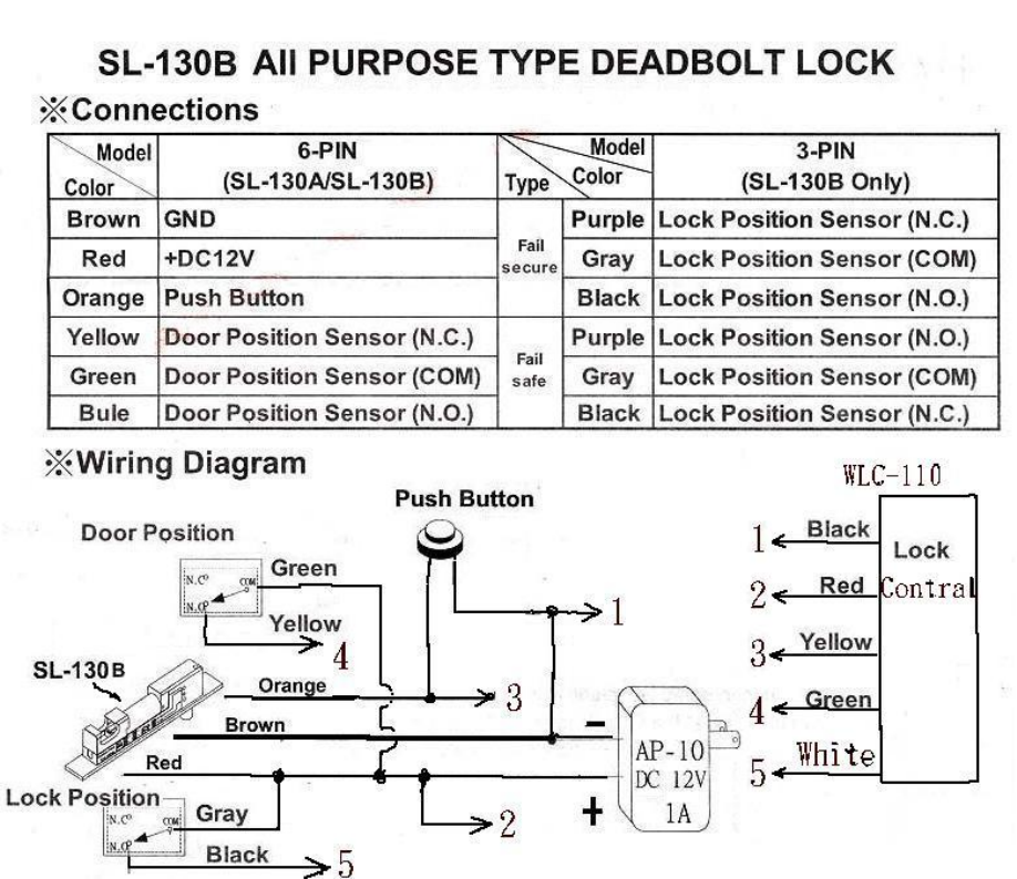 3. WLC-110 (Wireless lock controller) has five wires, color wire function as below.