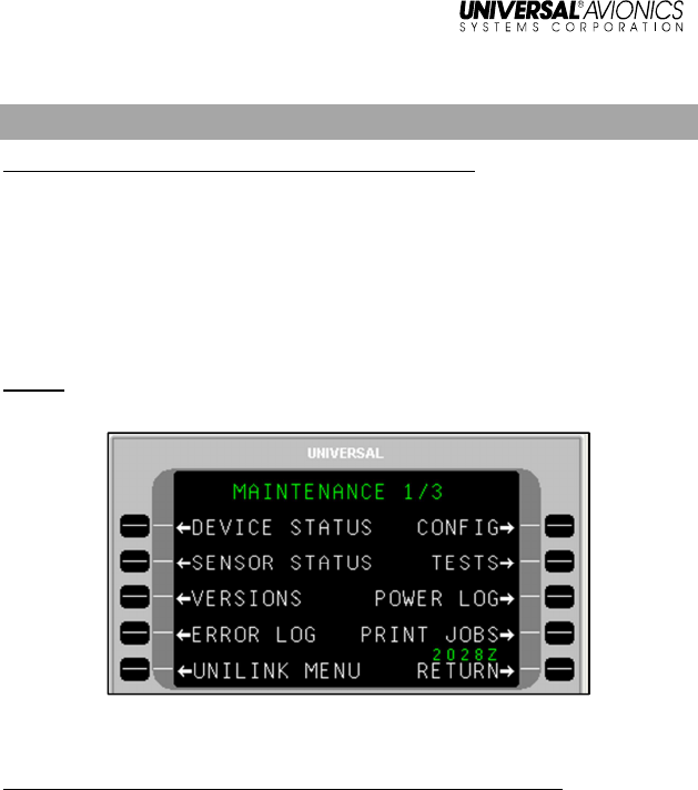 From the UniLink Menu, press MAINTENANCE, LSK [4L]. The