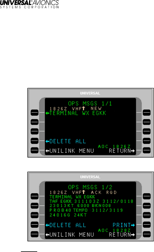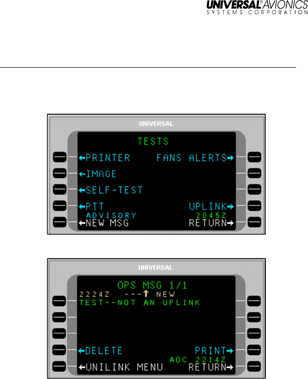 2. Press the [MSG] key to view test results (UNILINK ATC ALERT).