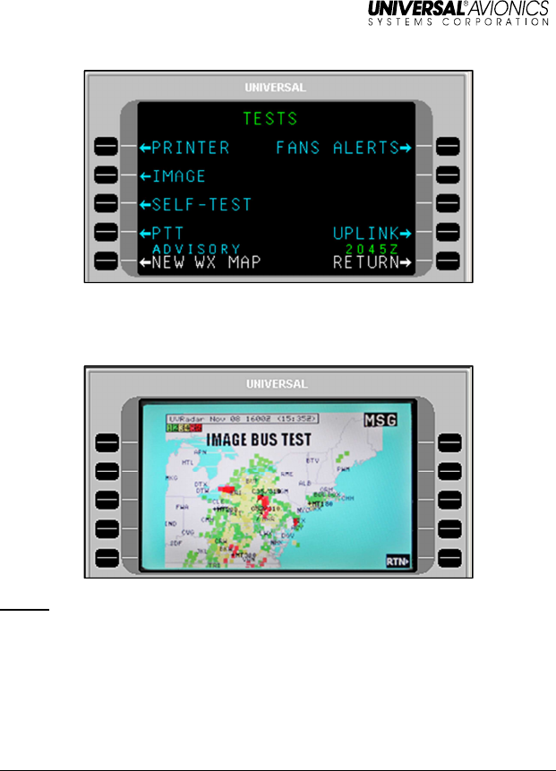 Selection of IMAGE, LSK [2L] is used to display a test image. While