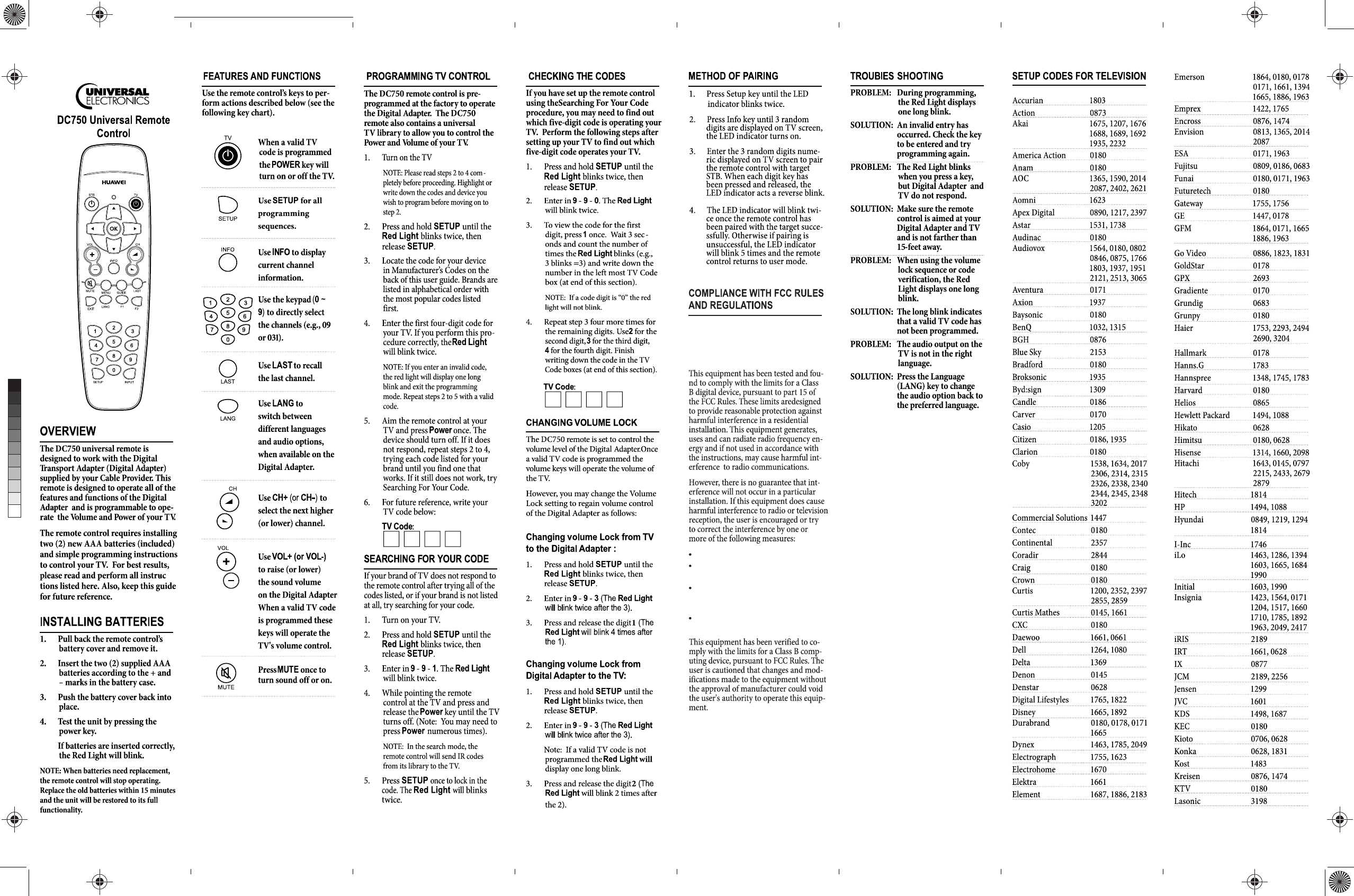 Universal Electronics 2119 Remote controller unit User Manual 1