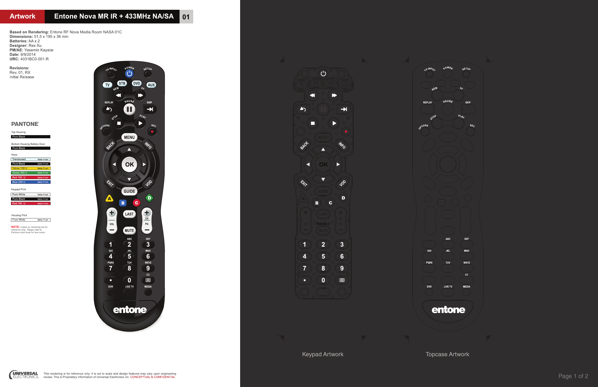 Universal Electronics 4031 Entone Nova MR IR+433MHz Remote User Manual Xara Xtreme