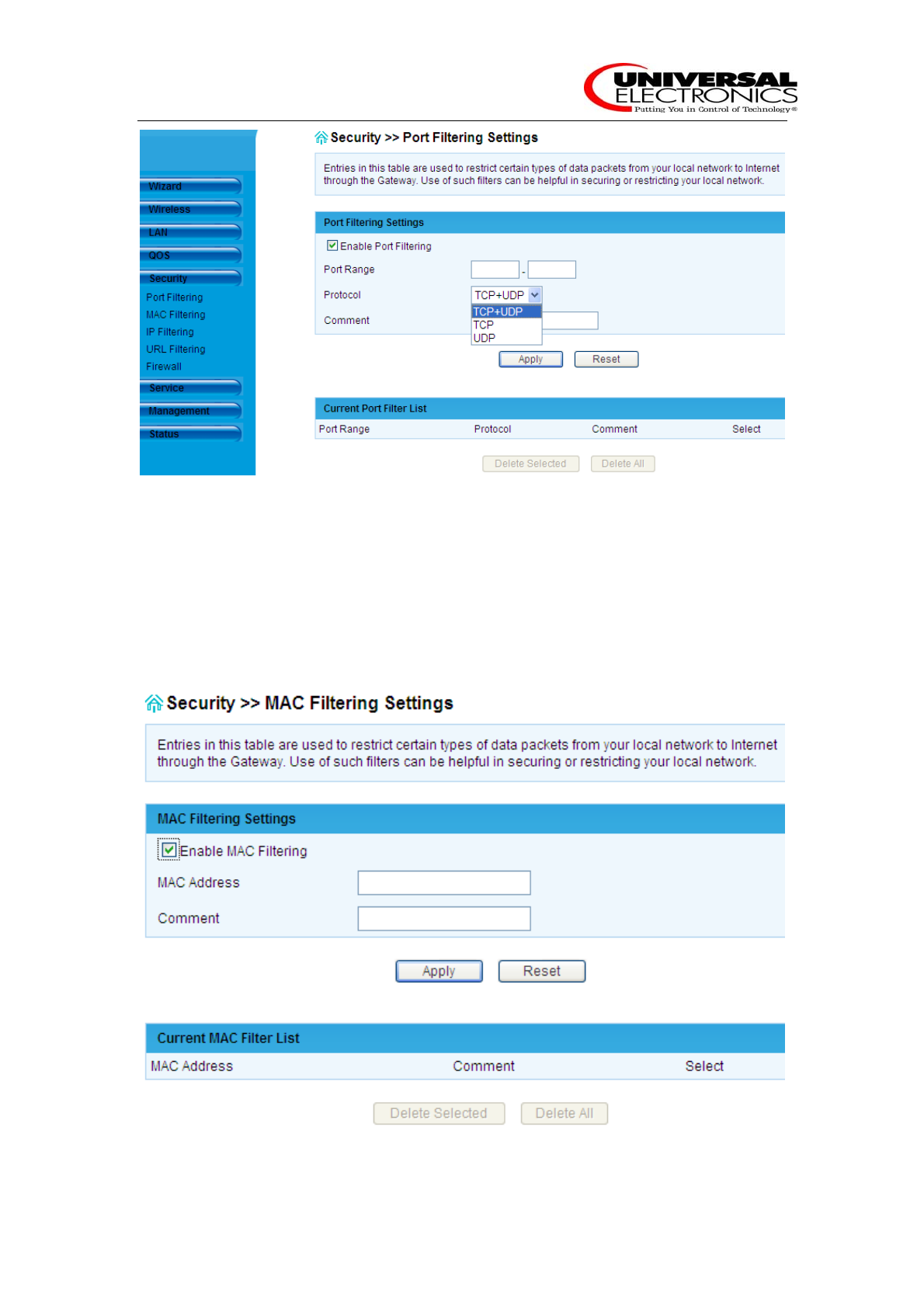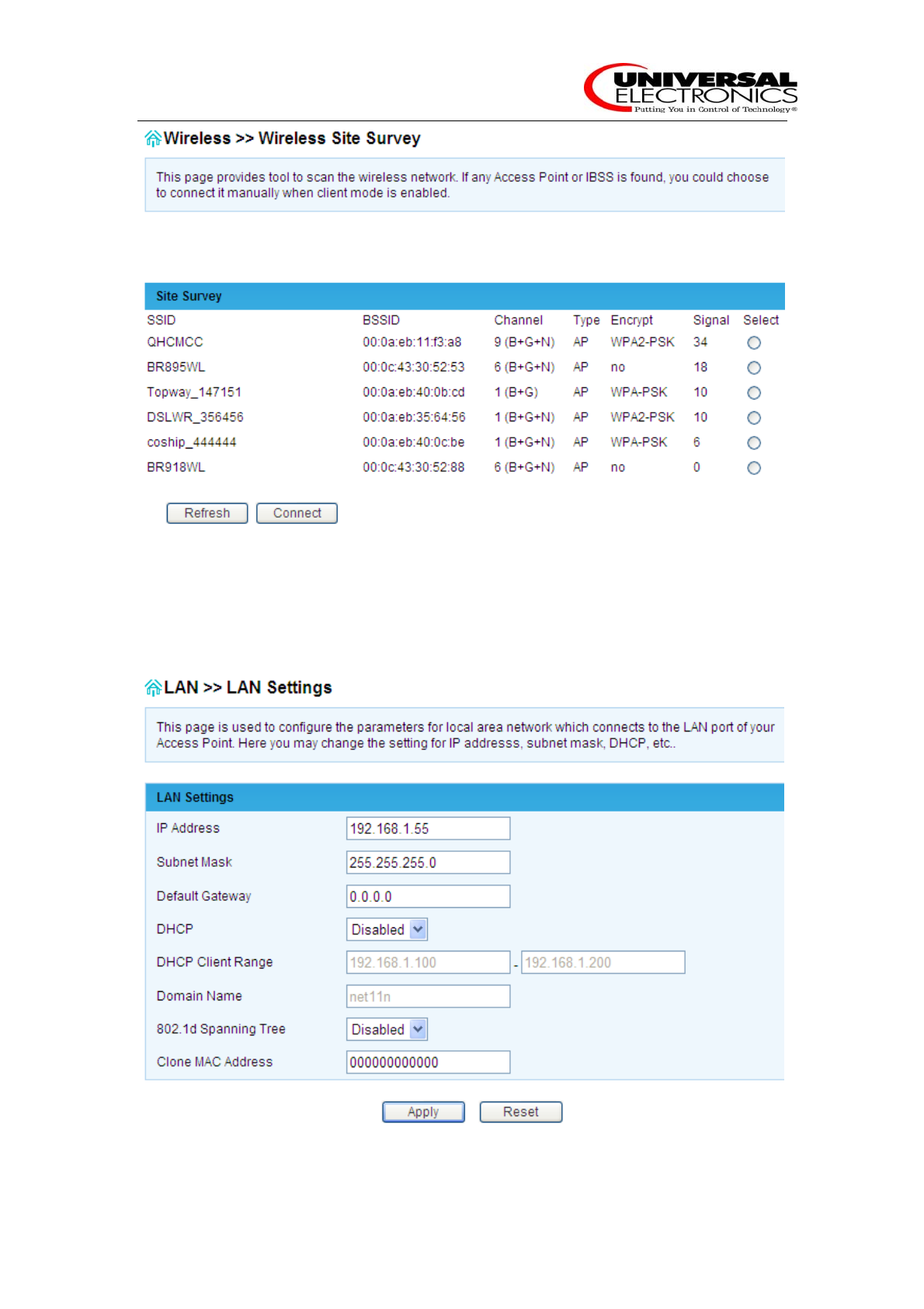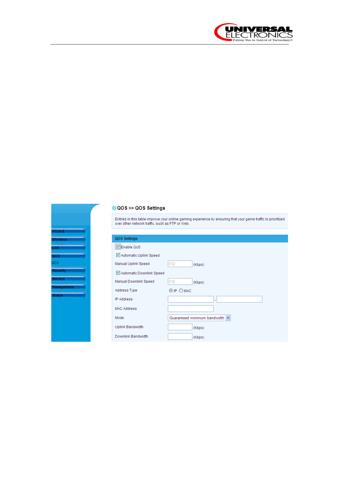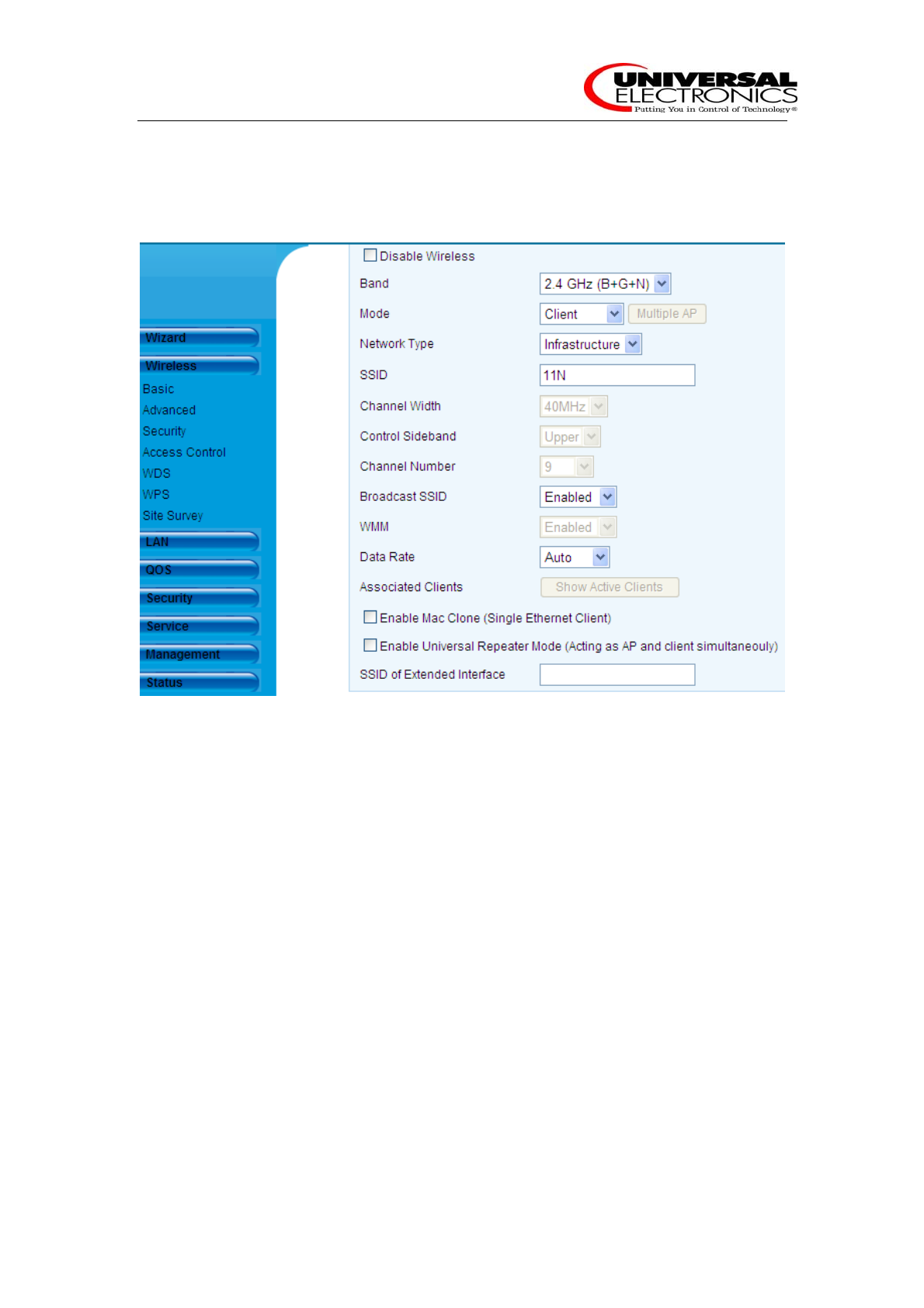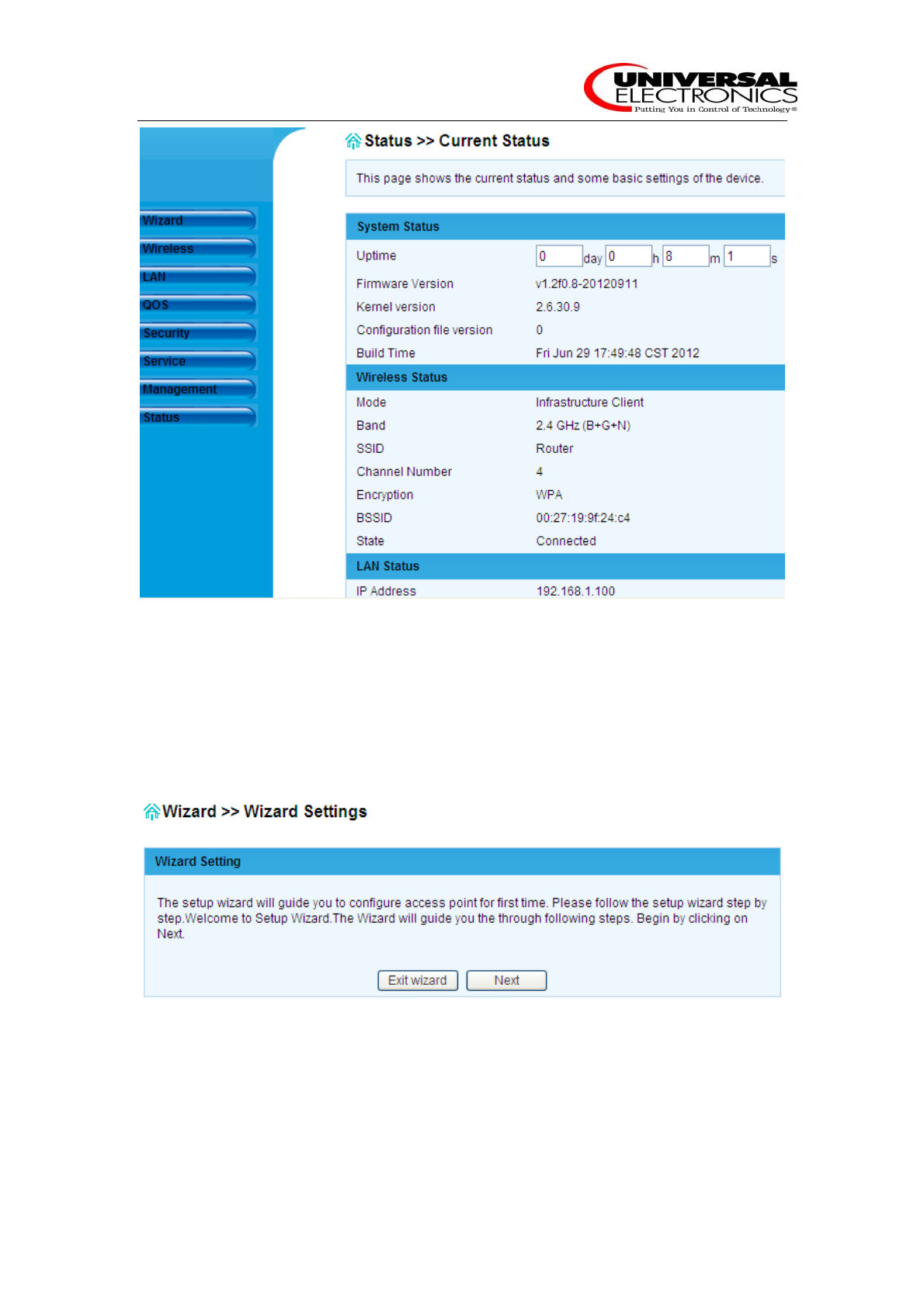 Wireless, LAN, QOS, Security, Service, Management, Status.