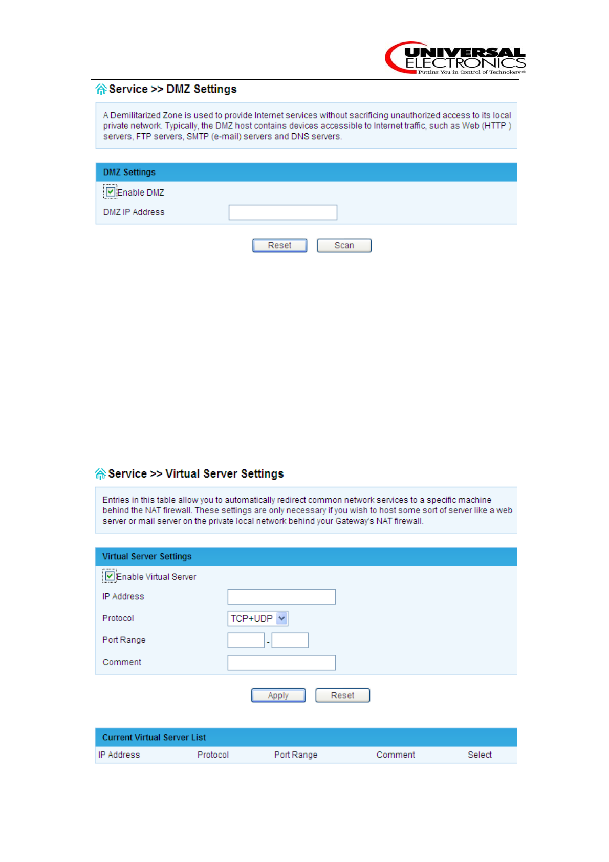 ¾ Supports Virtual Server, DMZ host, Dynamic DNS, NTP and QOS