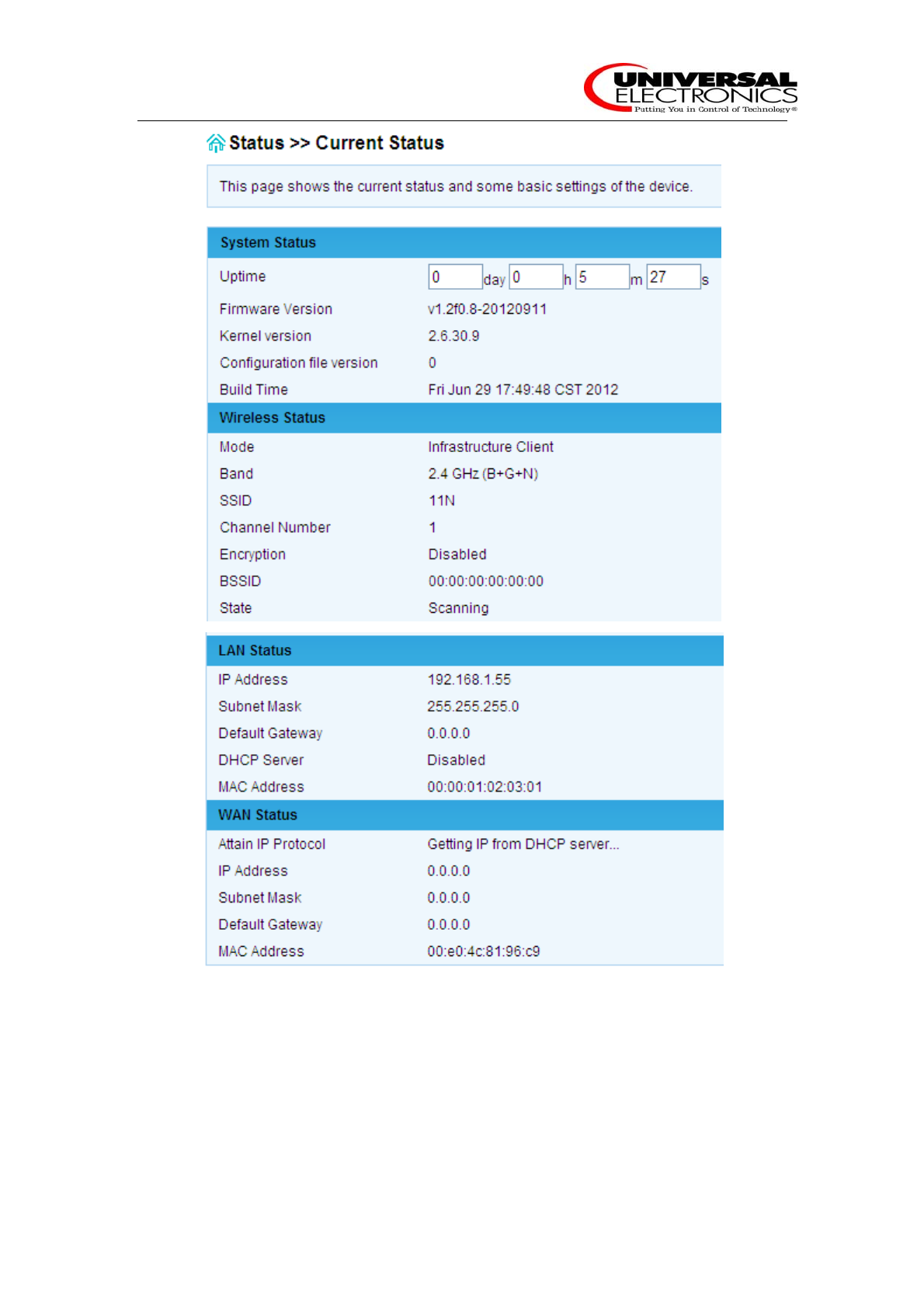 Universal Electronics Inc 11n Wireless Bridge(DIGITURK WCD HASHI BRIDGE) Hashi