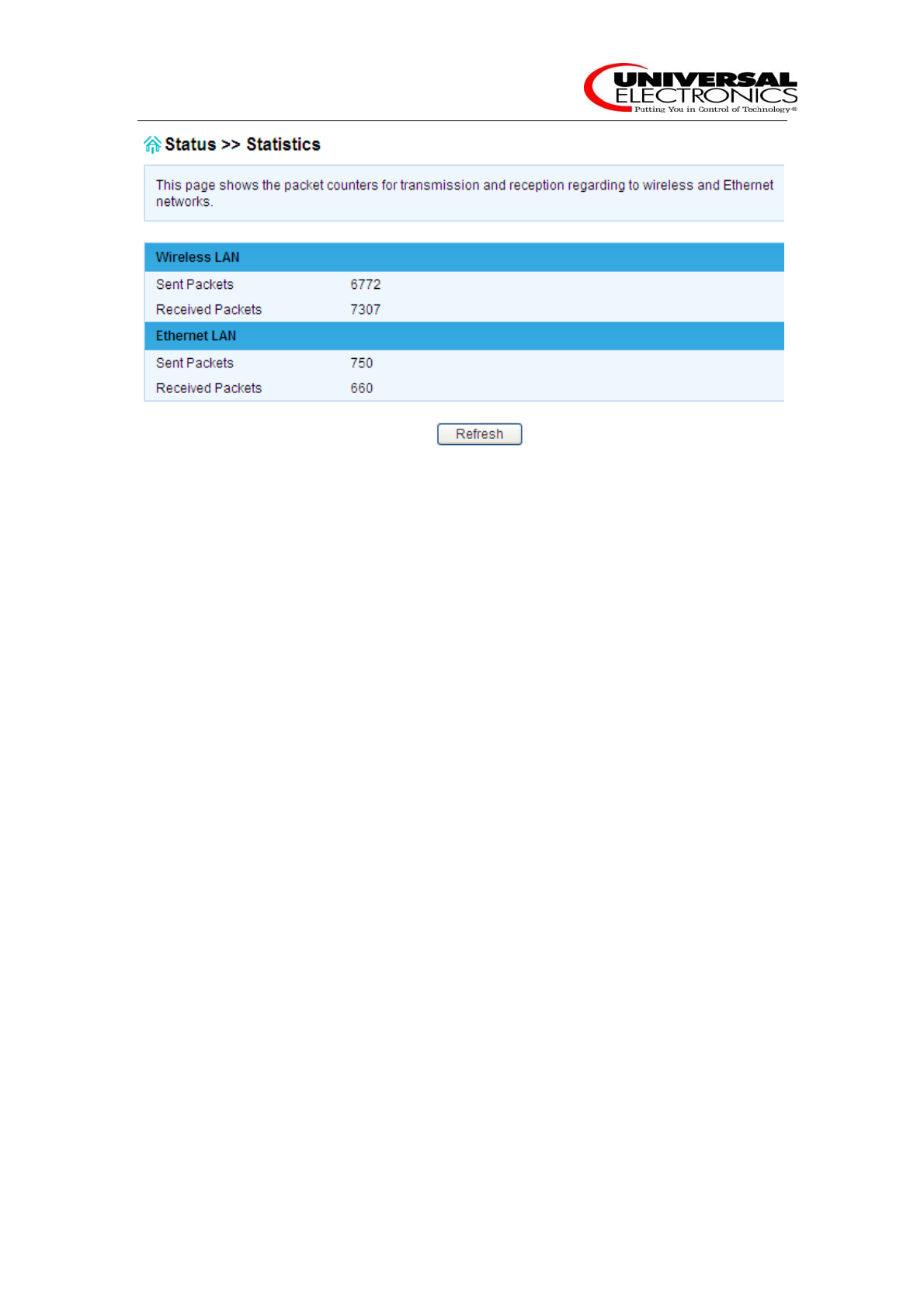 It displays the current Wireless LAN interface and LAN port packet message for the Wireless