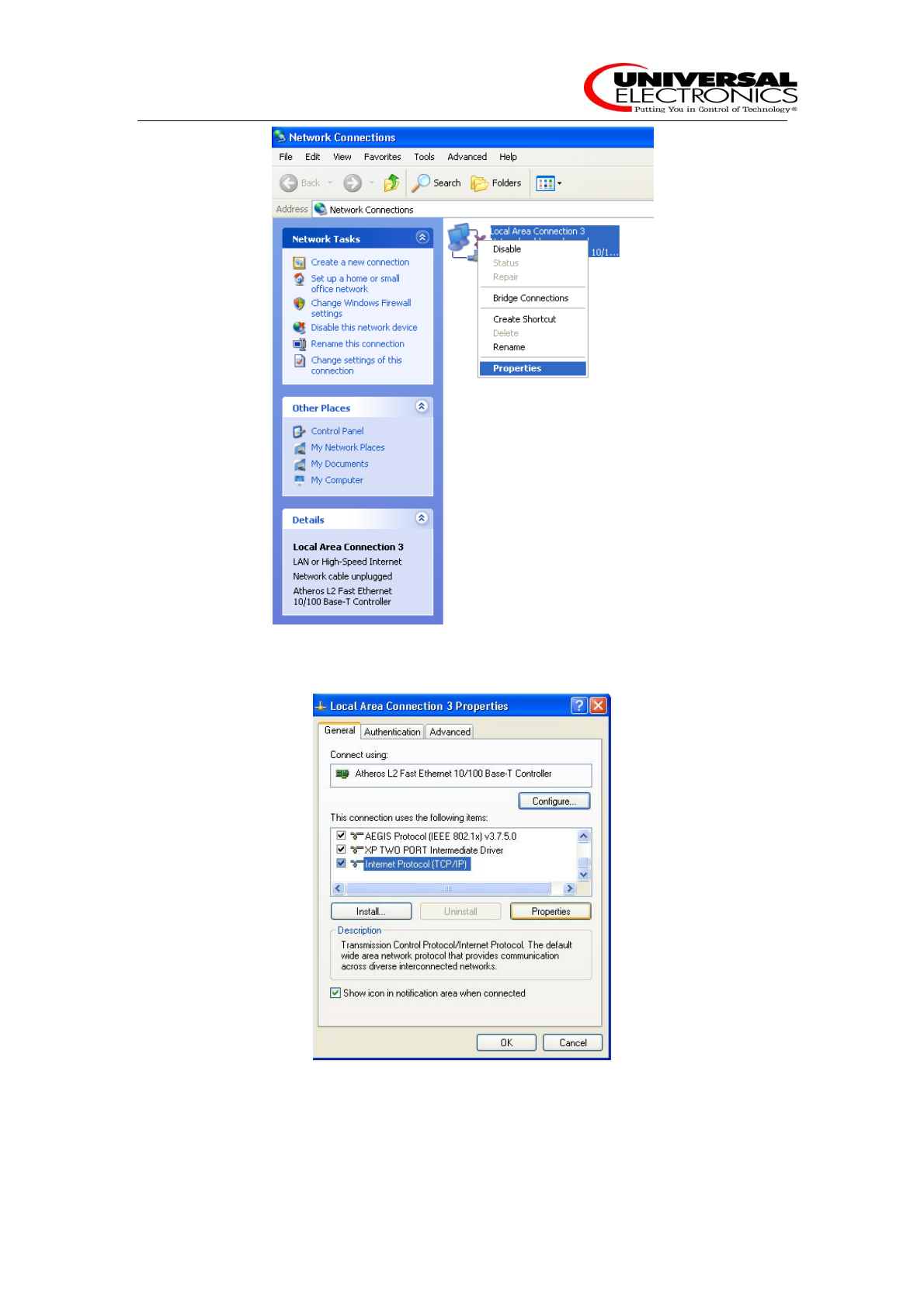 Choose Internet Protocol (TCP/IP) and click Properties.