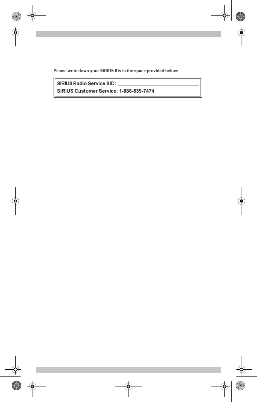 Warranty, please return product to an authorized SIRIUS retailer or call Customer