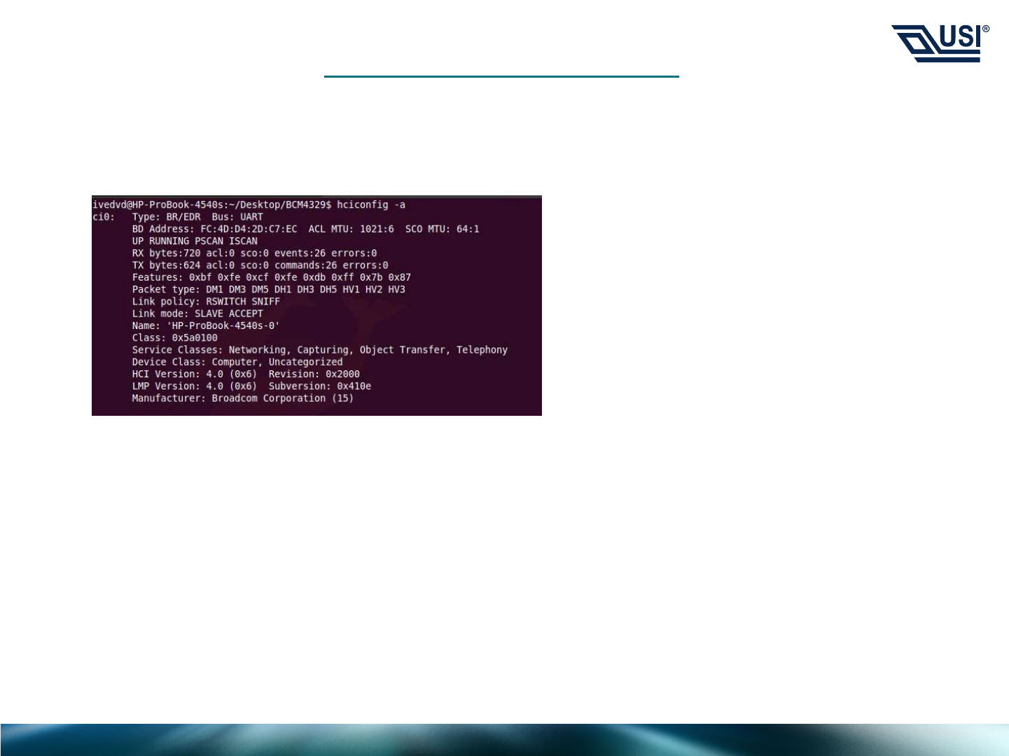 6. Use ‘hciconfig –a’ command to check Bluetooth device status.