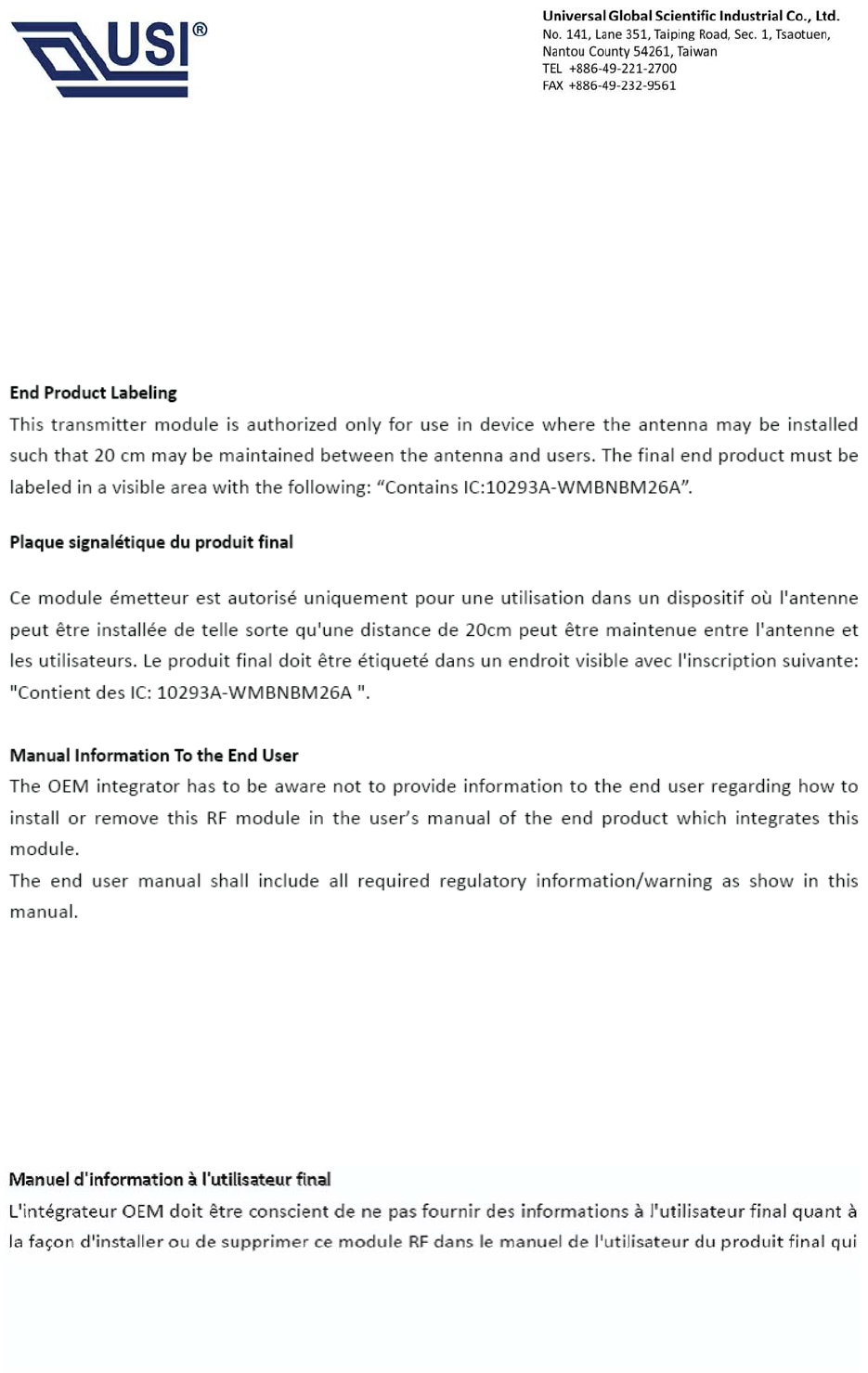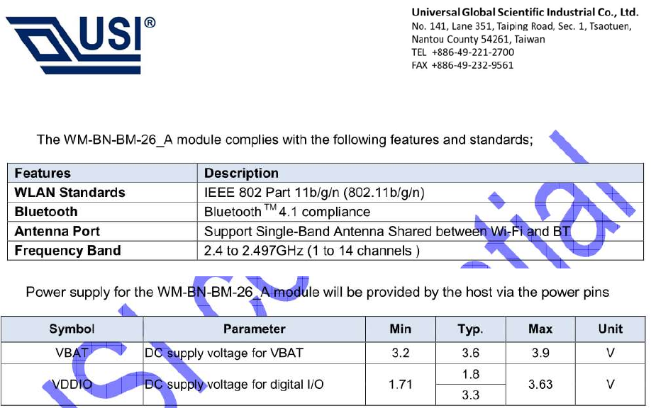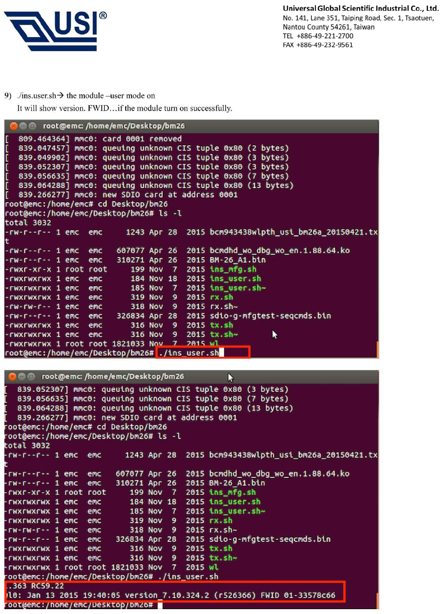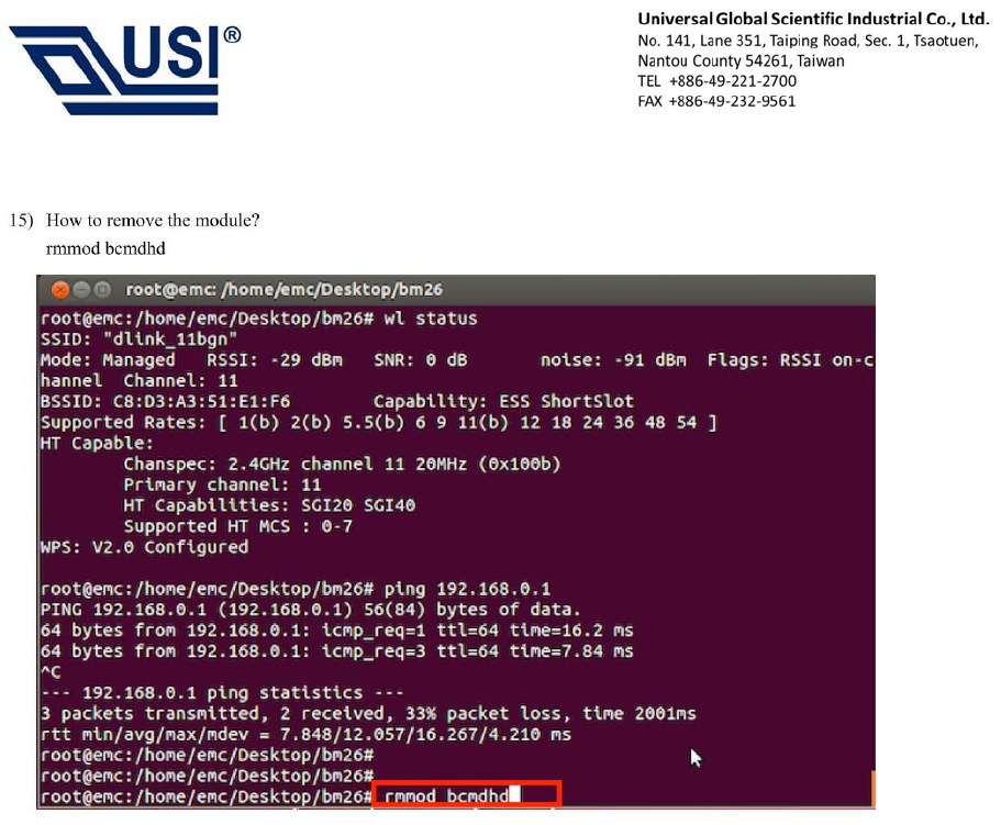 Universal Global Scientific Industrial Co., Ltd. 802.11b/g/n + BT Wireless LAN Module Unlock rev