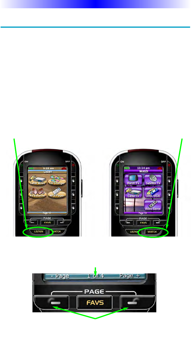 Thus, if you have selected Watch TV, you will see a list of buttons that