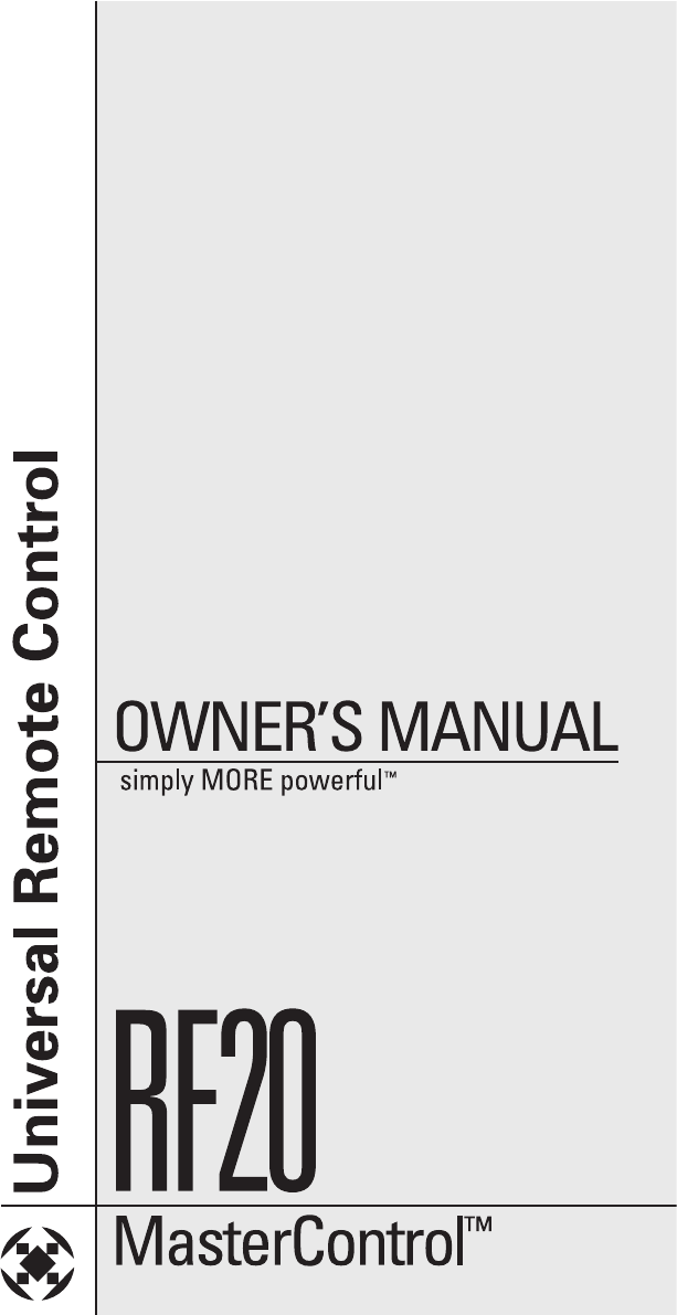 Universal Remote Control Univeral Urc Rf20 Owners Manual OCE 0046B